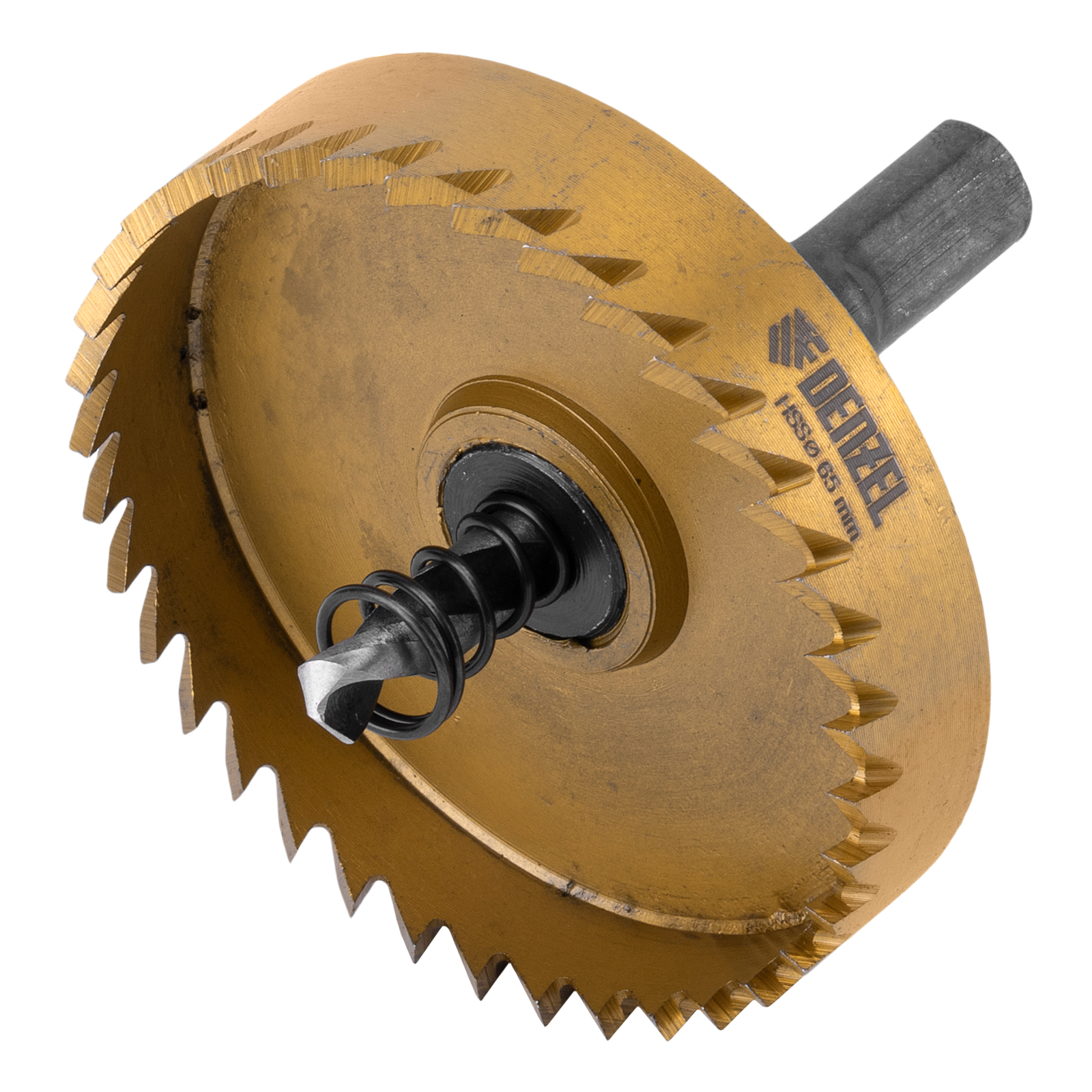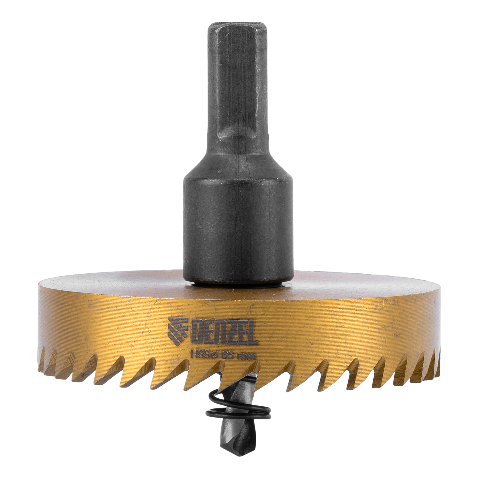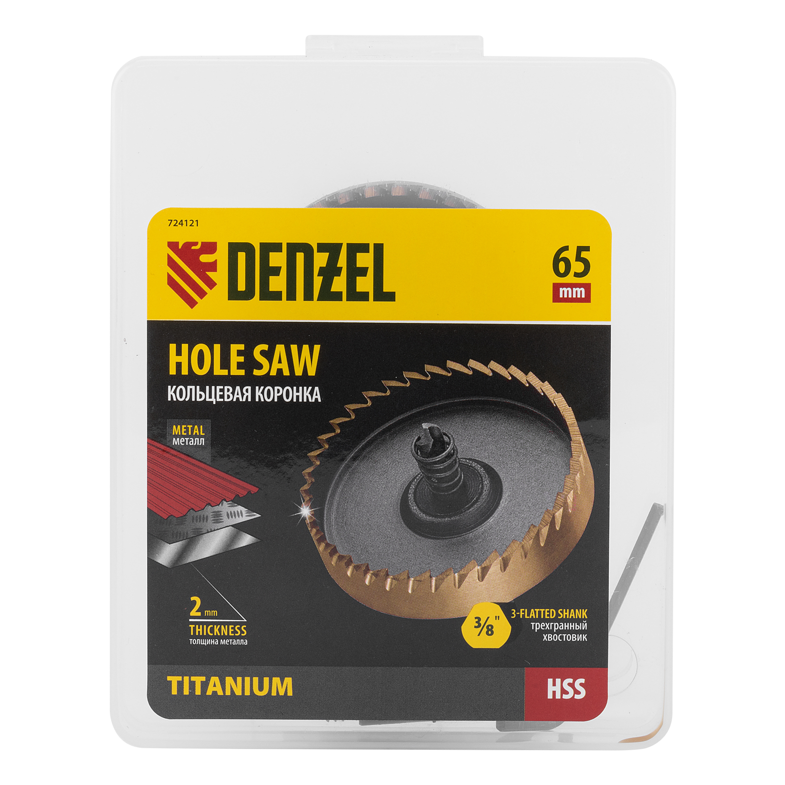 <p>Коронка Denzel 724121 диаметром 65 мм, из стали HSS, с нитридтитановым покрытием, применяется для сверления отверстий в черных, цветных металлах, пластике и других материалах. Рассчитана на профессиональное использование на строительной площадке. Коронка пригодится при прокладке коммуникаций, монтаже оборудования, крепежных элементов и различных конструкций.</p><h2>Преимущества</h2><ul><li>Прочность — корпус и рабочая часть являются монолитной конструкцией из высококачественной стали.</li><li>Высокая эффективность — центрирующее сверло из быстрорежущей стали облегчает засверливание.</li><li>Коррозионная стойкость — корпус и рабочая часть имеют защитное нитридтитановое покрытие.</li><li>Эффективное удаление продуктов сверления — специальная пружина препятствует застреванию шлама.</li><li>Трехгранный хвостовик — коронка не прокручивается в патроне перфоратора во время работы.</li></ul>