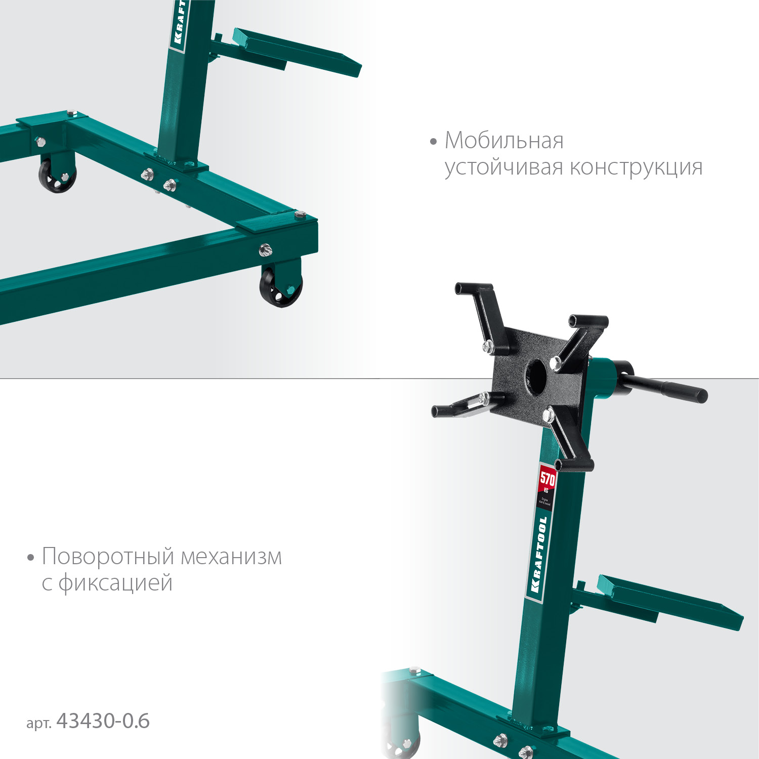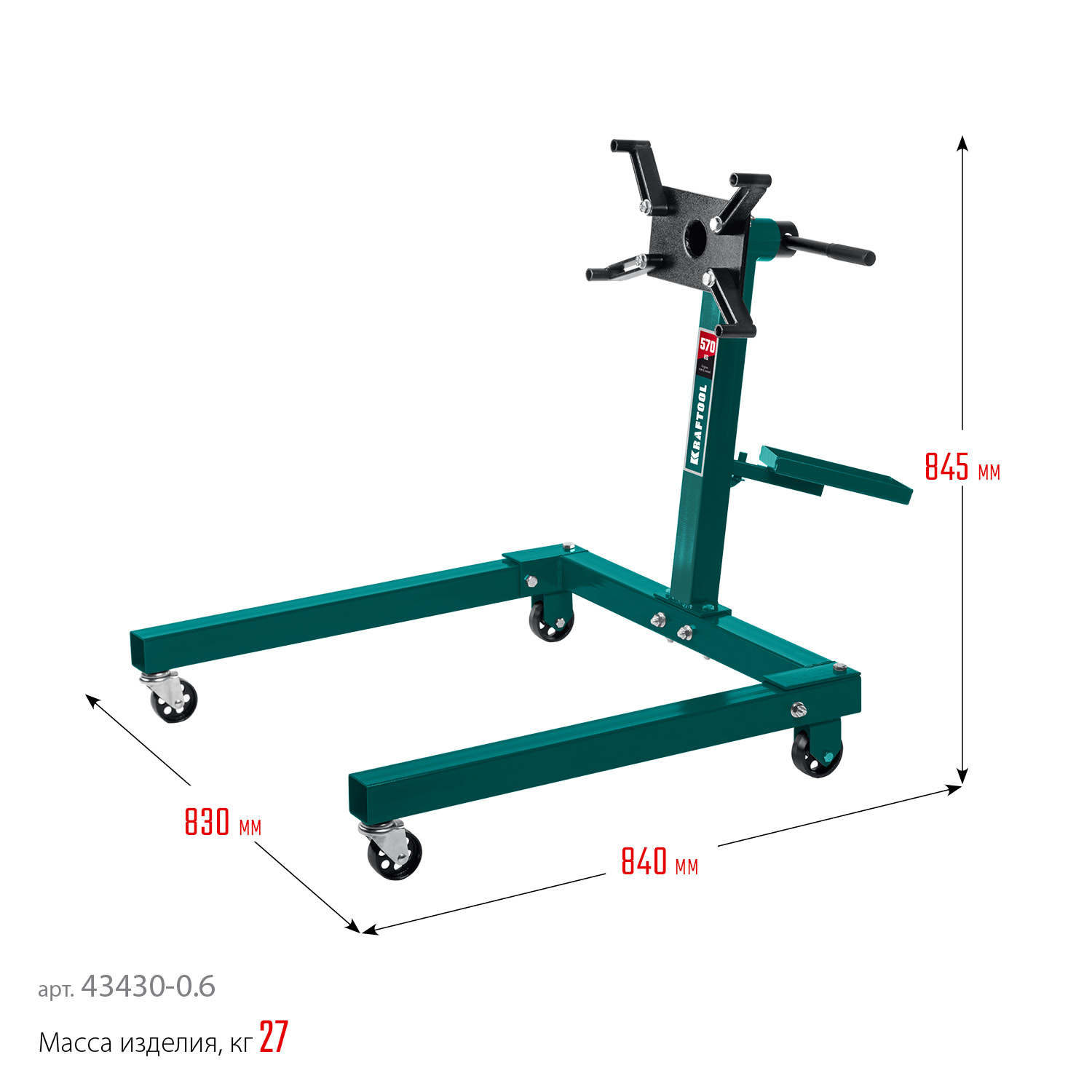 Служит для вывешивания двигателя или трансмисии и удобного перемещения по мастерской.