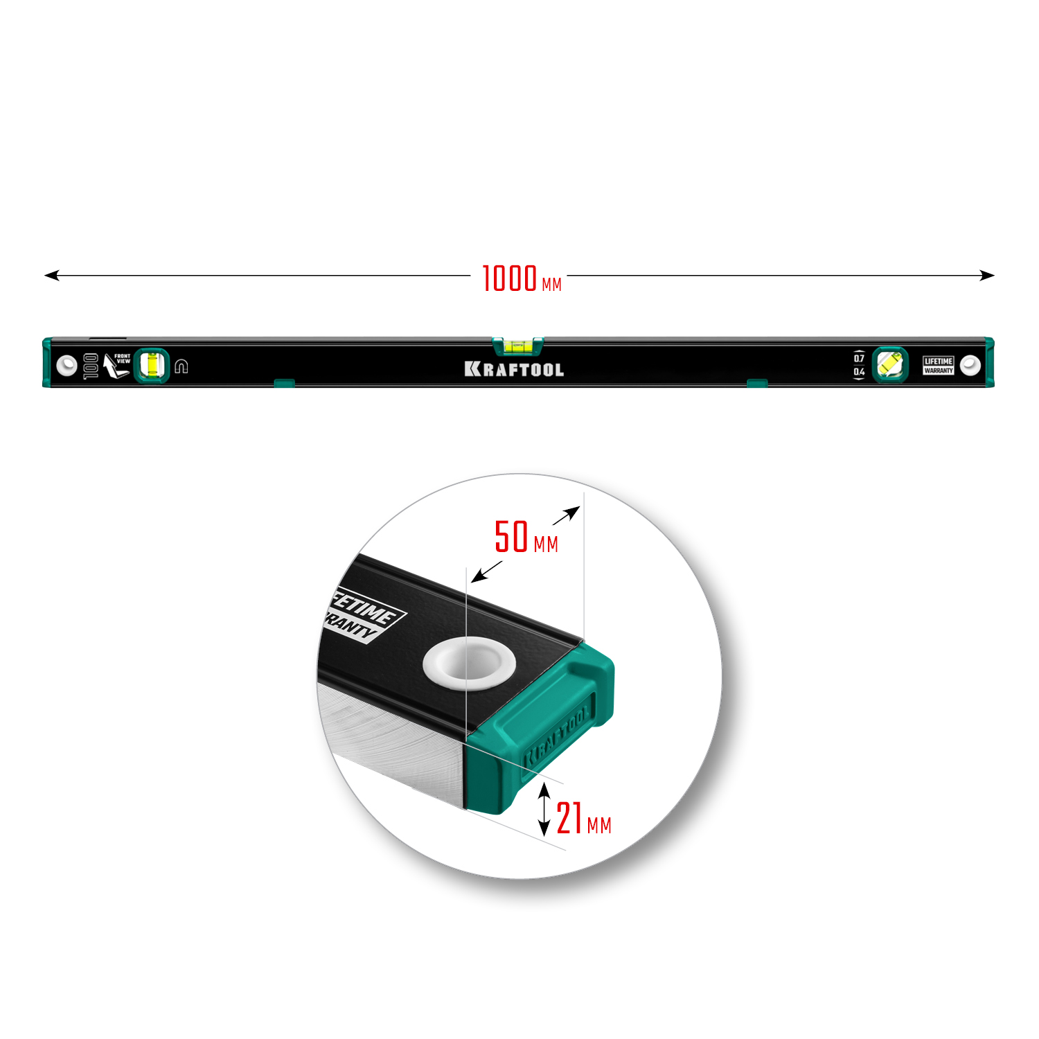KRAFTOOL 1000 мм, усиленный профиль, с зеркальным глазком, магнитный уровень (34785-100)