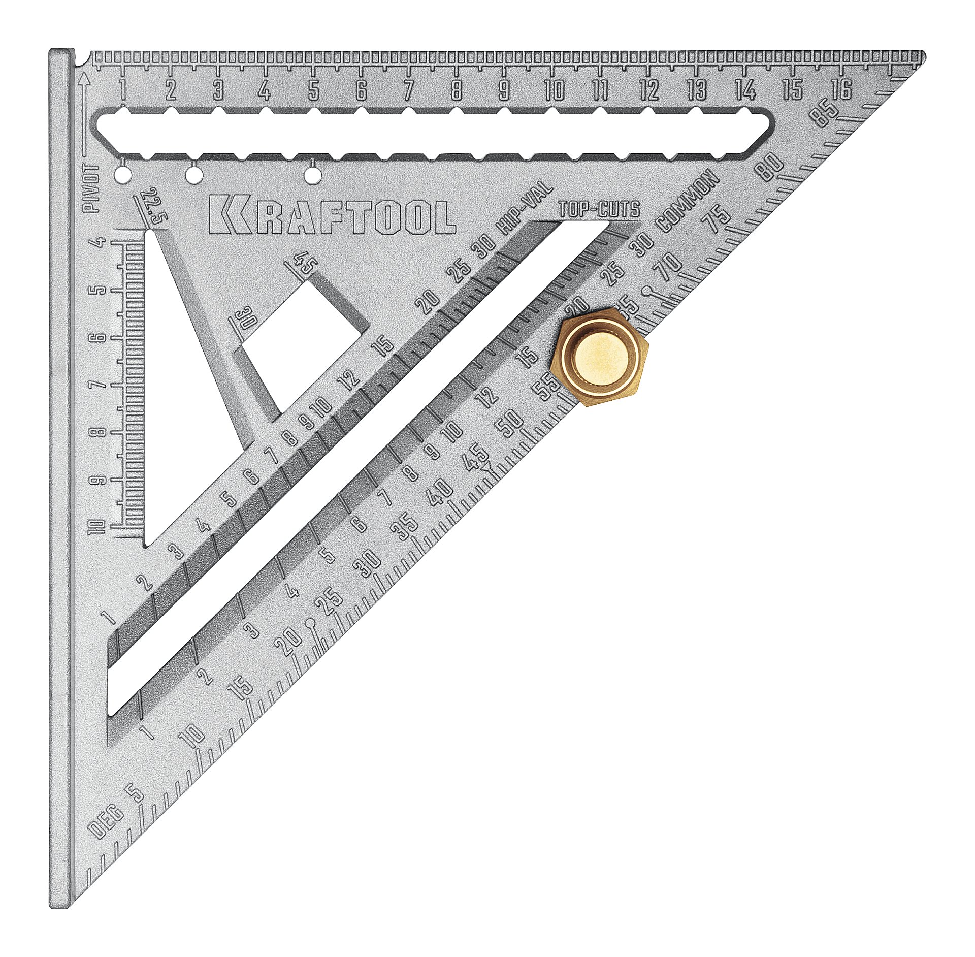Высокоточный кровельный угольник - инструмент для разметочных работ и контроля перпендикулярности кровельных конструкций. Применяется в качестве торцовочного угольника, транспортира, рейсмуса и направляющей для пилы.