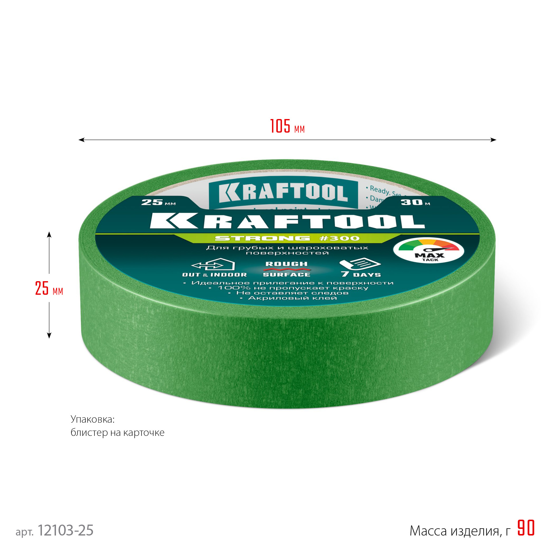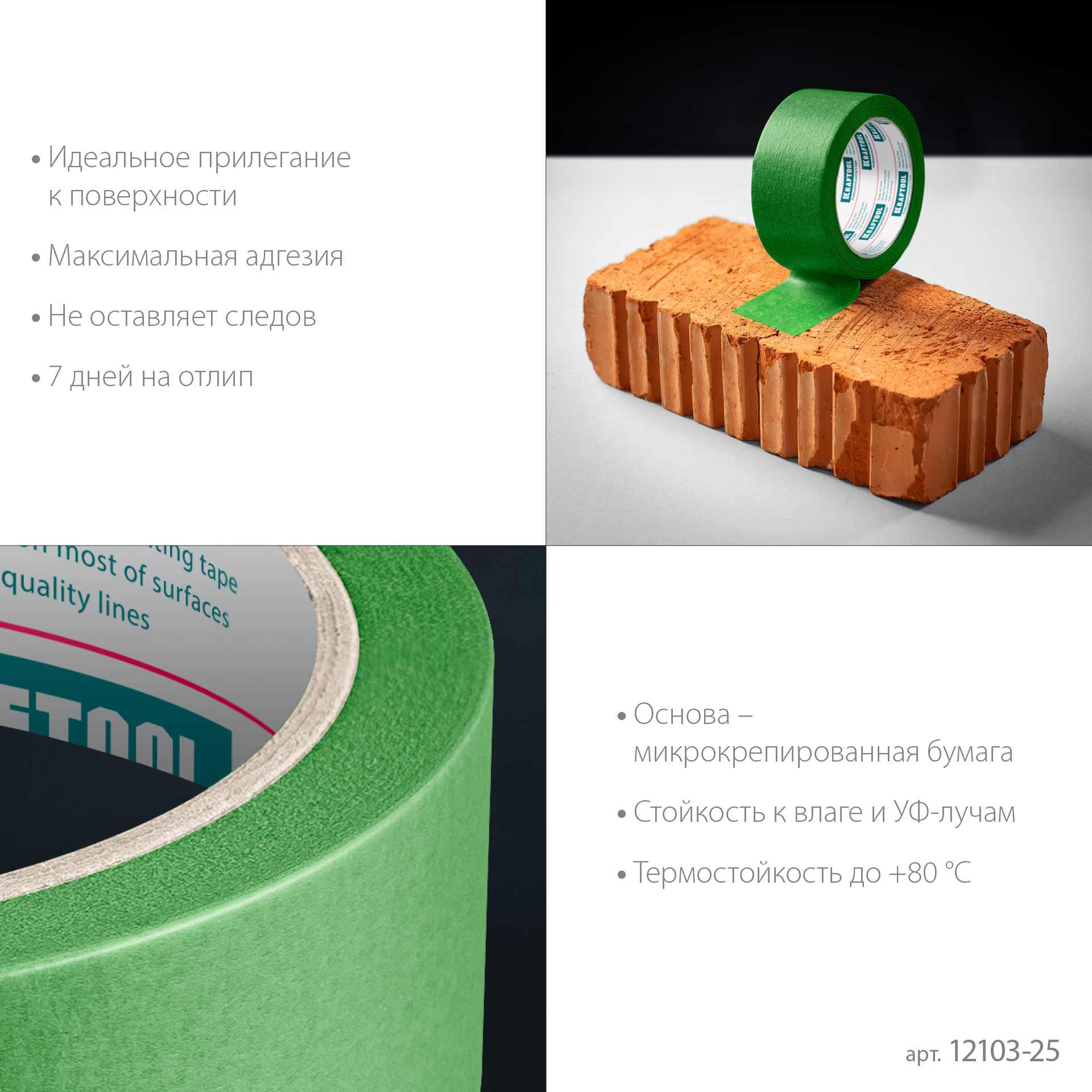 Малярная лента для грубых и шероховатых поверхностей предназначена для работы снаружи помещения с большинством материалов. Стоек к УФ-лучам, влаге, температуре до +80°С, надежно приклеивается к поверхности, позволяя получившейся линии быть максимально ровной, без подтеков краски. Легко удаляется, сохраняя первоначальный вид поверхности, не оставляя после себя следов клея.