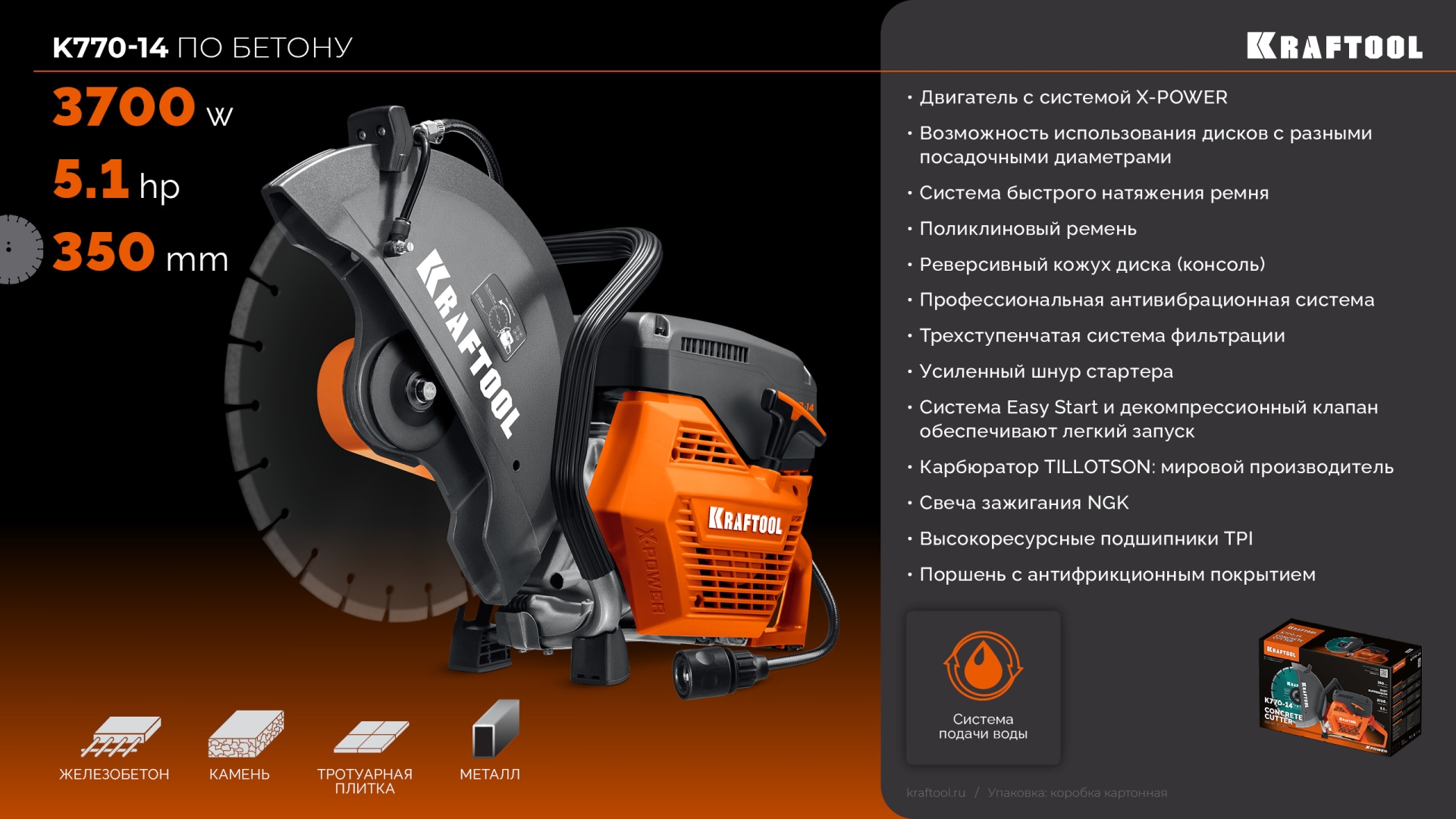 Для сухой и мокрой резки и проделывания спилов, отверстий в литом бетоне, камне, кирпиче, металлических конструкциях, стенах, асфальте и бордюрах.