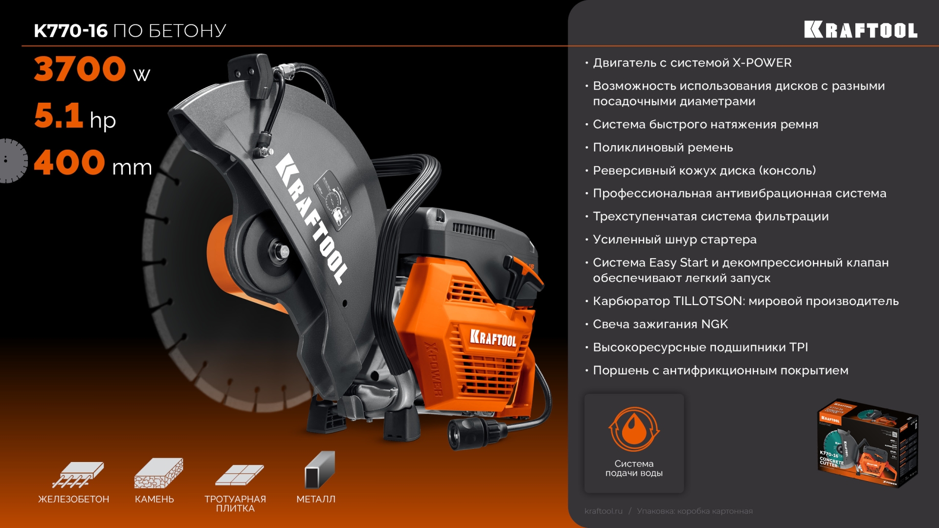 KRAFTOOL 3700 Вт, 400 мм, без диска, бензорез по бетону (бетонорез) (K770-16)