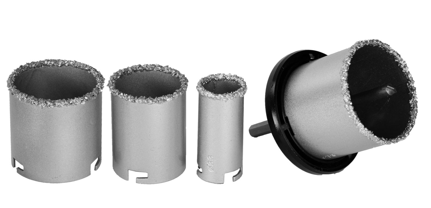 Набор применяется для получения ровных отверстий в облицовочных материалах, а также в ячеистом бетоне, кирпиче и гипсокартоне. Используется на дрелях и легких перфораторах в режиме безударного сверления.