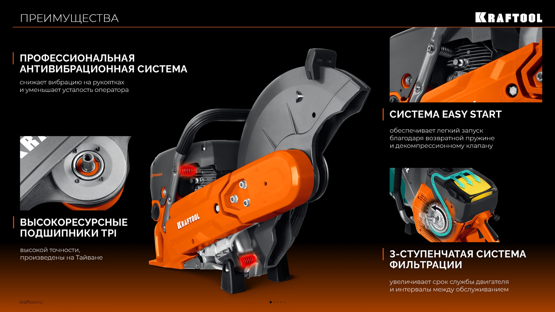 • Усиленный шнур стартера со значительно повышенной износостойкостью повышает надежность эксплуатации