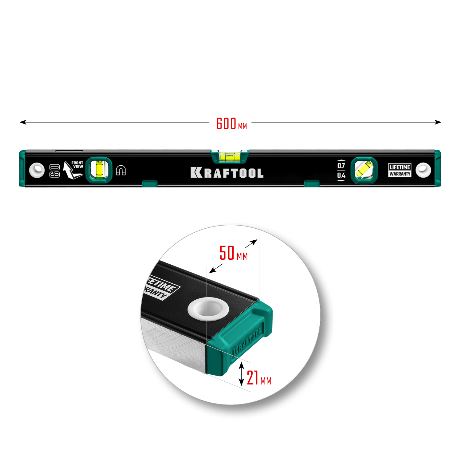 KRAFTOOL 600 мм, усиленный профиль, с зеркальным глазком, магнитный уровень (34785-60)