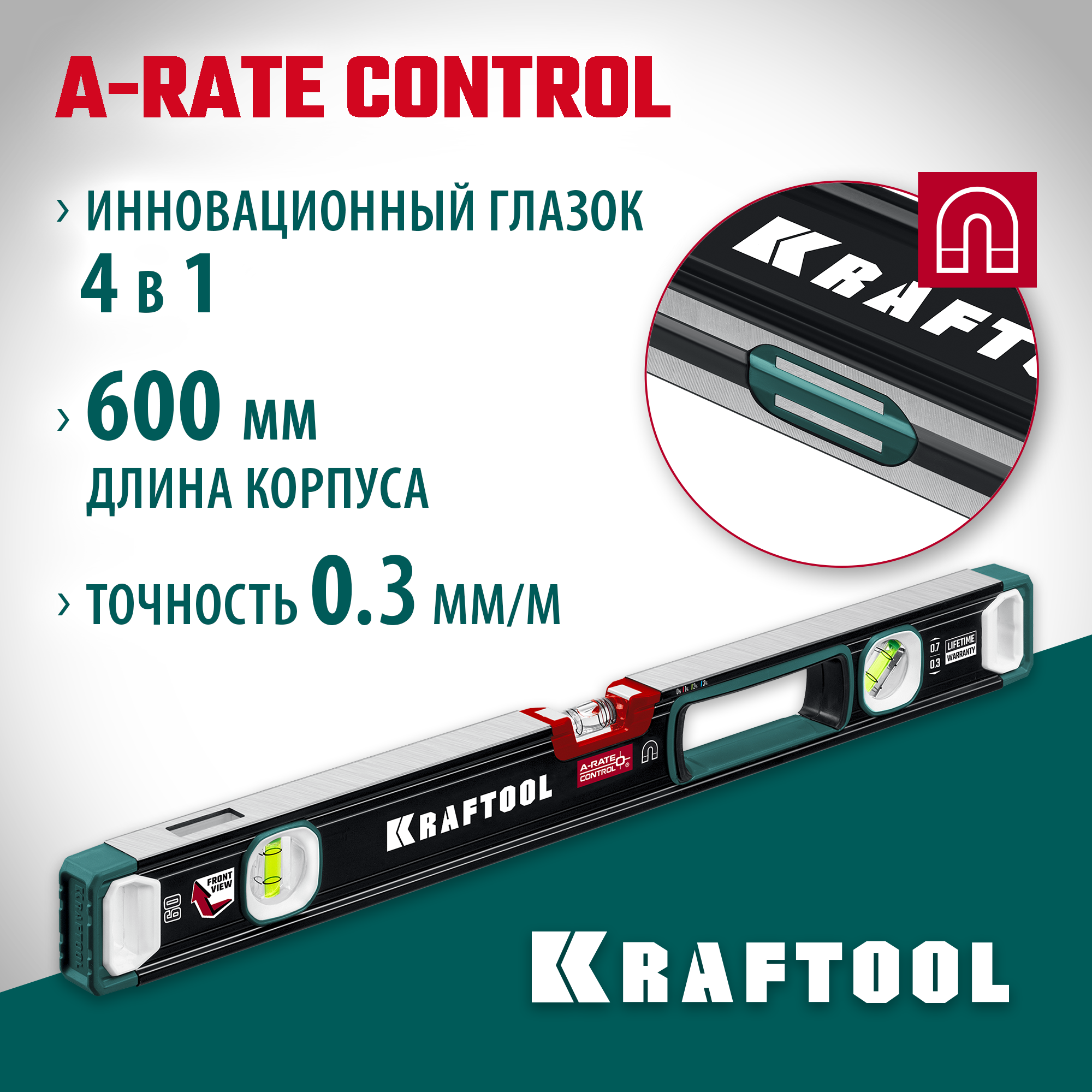 KRAFTOOL A-RATE CONTROL, 600 мм, точность 0.3 мм/м, с зеркальным глазком, сверхпрочный магнитный уровень (34988-60)