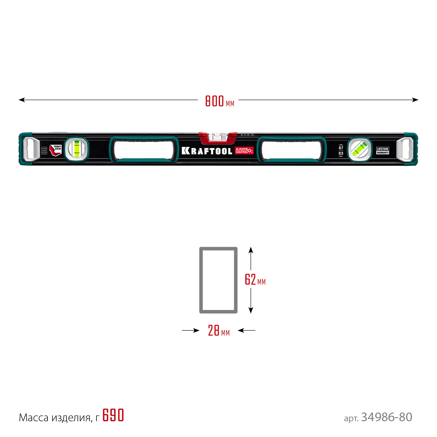 KRAFTOOL A-RATE CONTROL, 800 мм, точность 0.3 мм/м, с инновационным зеркальным глазком, сверхпрочный уровень (34986-80)