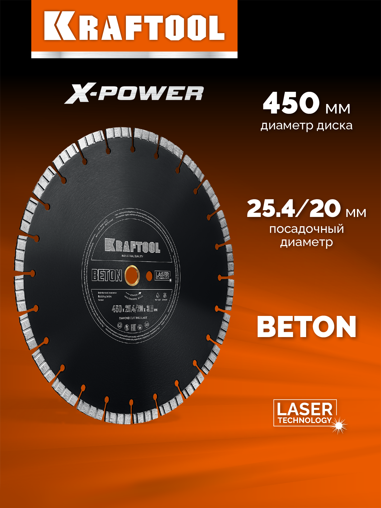 KRAFTOOL BETON 450 мм (25.4/20 мм, 12х3.8 мм), алмазный диск (36686-450)