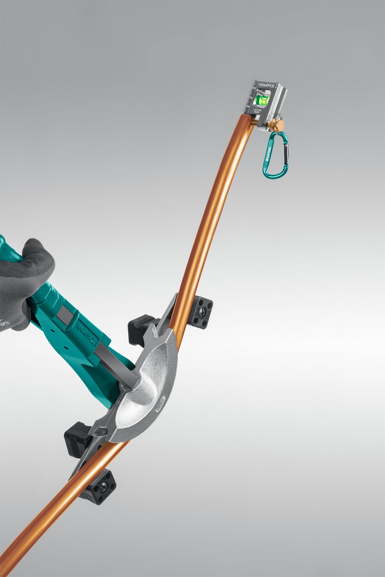 - Специальная струбцина для установки на трубы, для измерений при сгибании