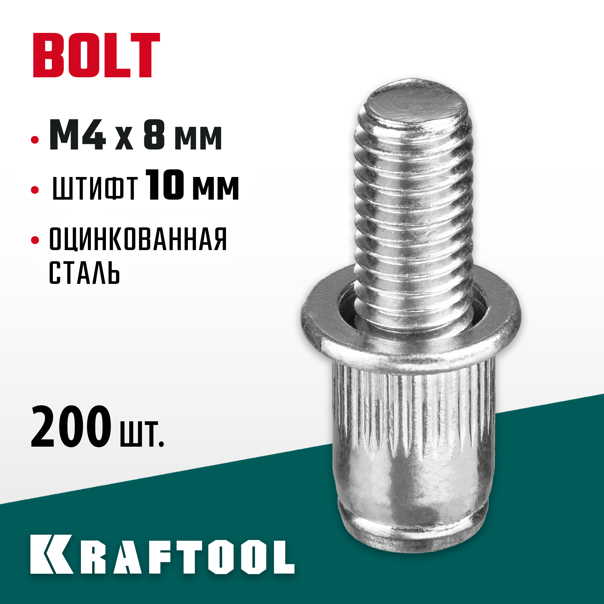 KRAFTOOL Bolt, М4 x 8 мм, штифт 10 мм, 200 шт, стальные винтовые заклепки (311709-04-10)