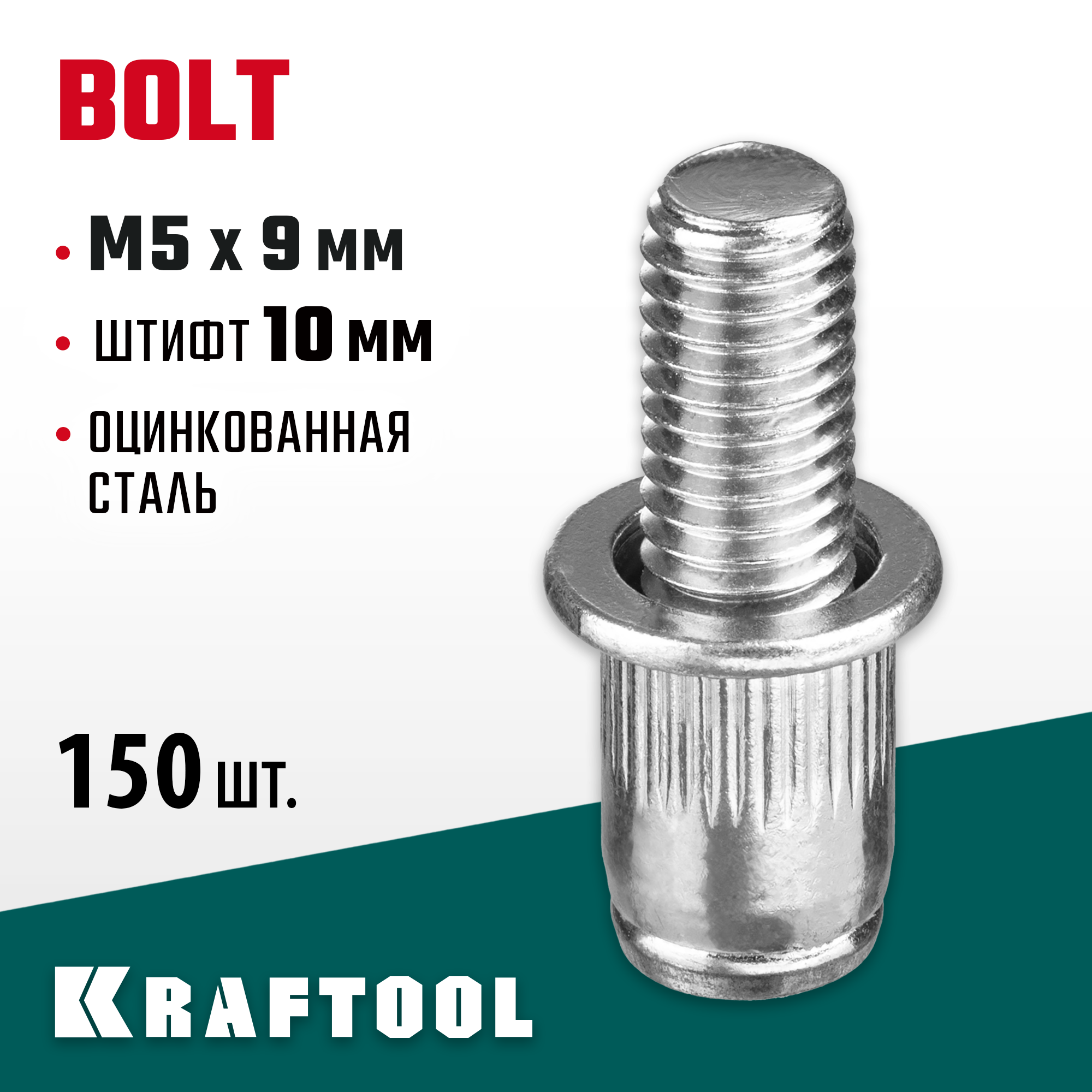 KRAFTOOL Bolt, М5 x 9 мм, штифт 10 мм, 150 шт, стальные винтовые заклепки (311709-05-10)