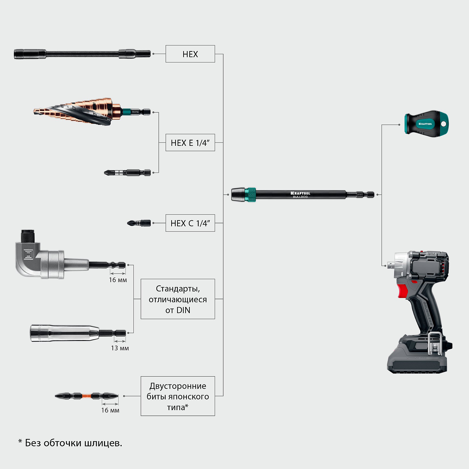 - MULTI FORM - полная совместимость с любыми битами на основе 1/4″