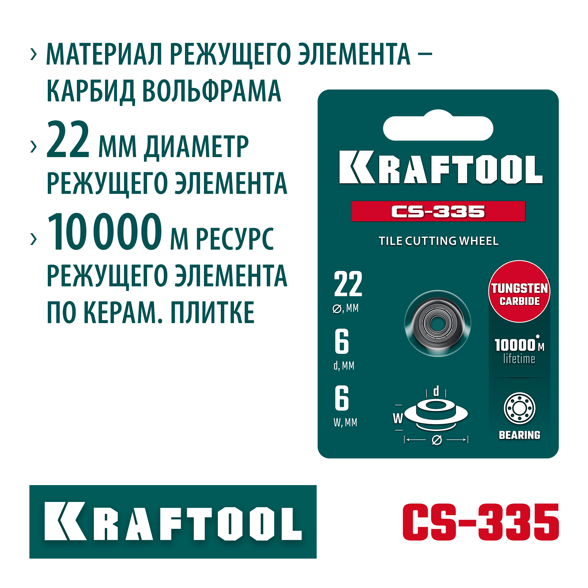 Режущий элемент для системы сухой резки имеет подшипник. Помогающий достигать плавного реза поверхности плитки. Материал режущего элемента, карбид вольфрама, имеет ресурс в 10000 м. Подхоит для замены режущего элемента для системы для сухой резки плитки арт.33250