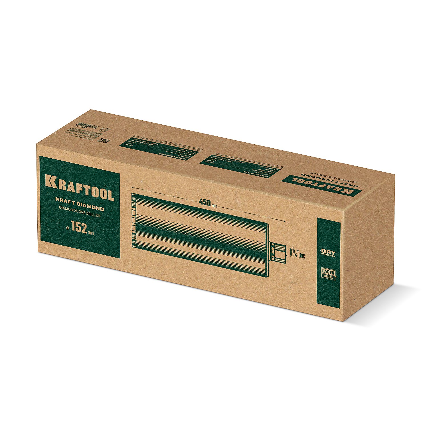 KRAFTOOL DIAMOND 152 мм (450 мм, 1 1/4″, лазерная сварка сегментов), Алмазная Коронка по железобетону (29825-152)
