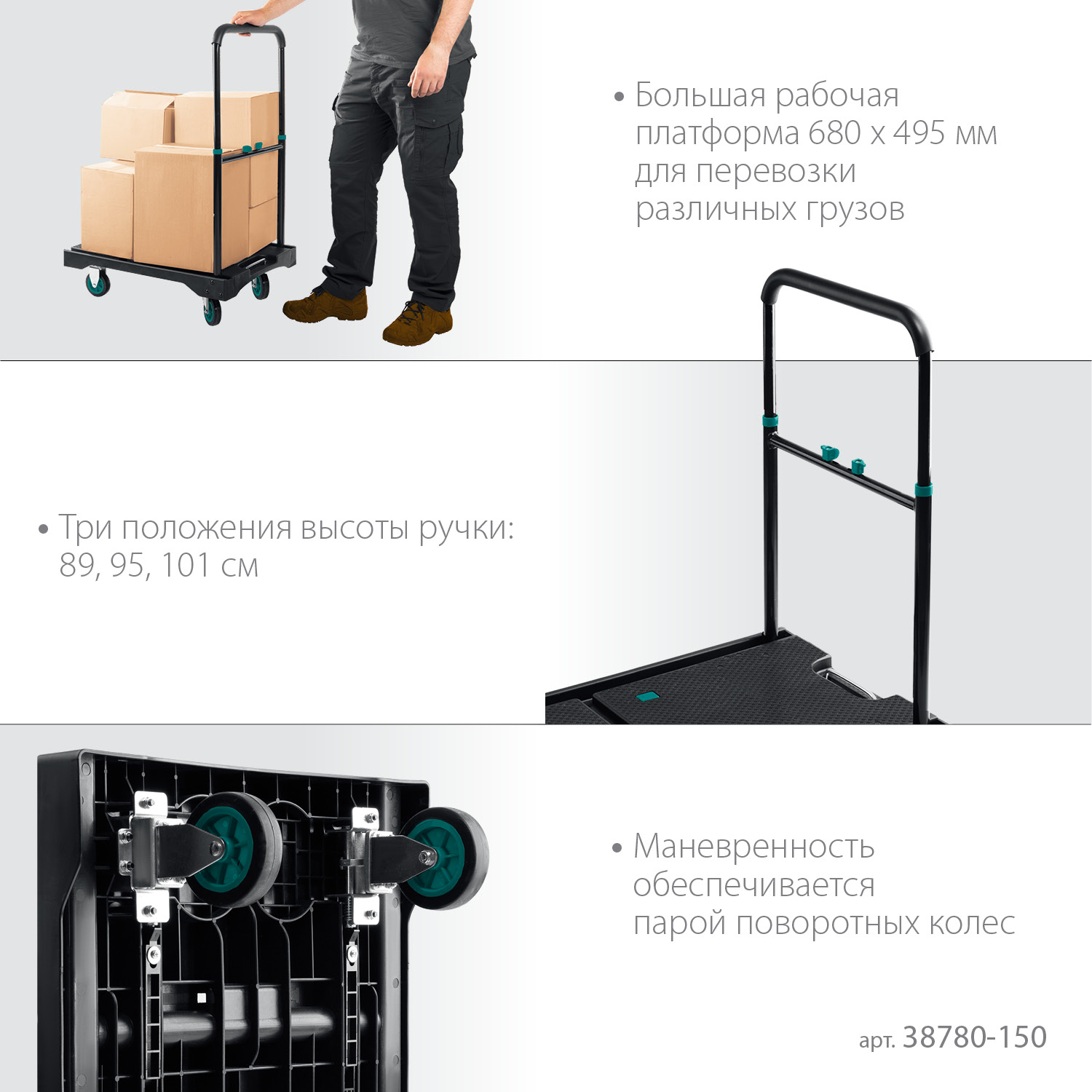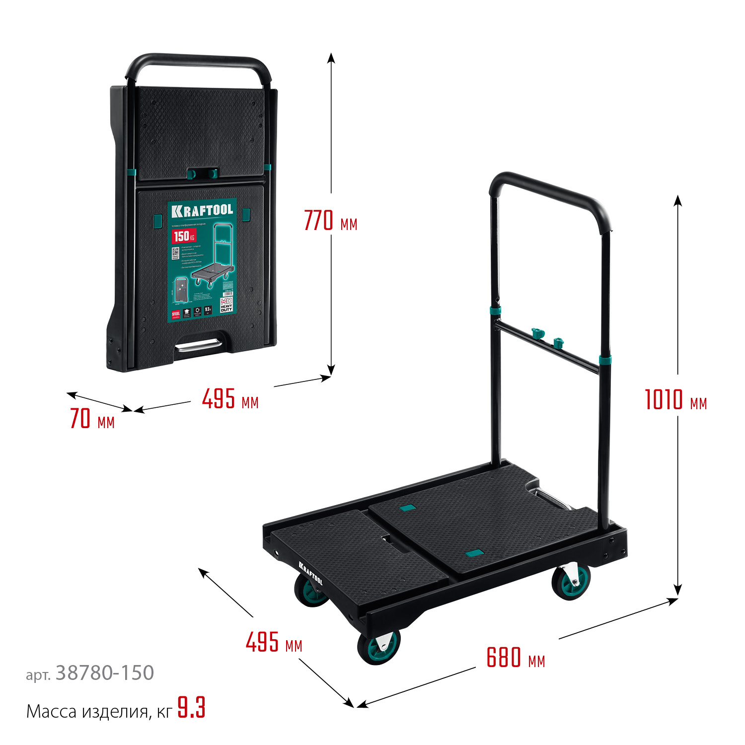 Пластиковая платформенная тележка KRAFTOOL универсальное приспособление для перевозки различных грузов как дома, так и на предприятии.