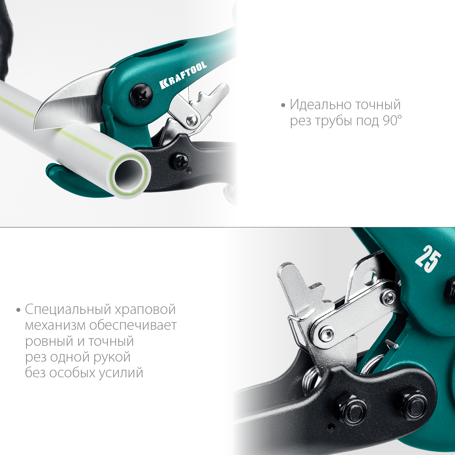 - Особый храповый механизм обеспечивает легкий, прямой и точный рез одной рукой с приложением минимального усилия