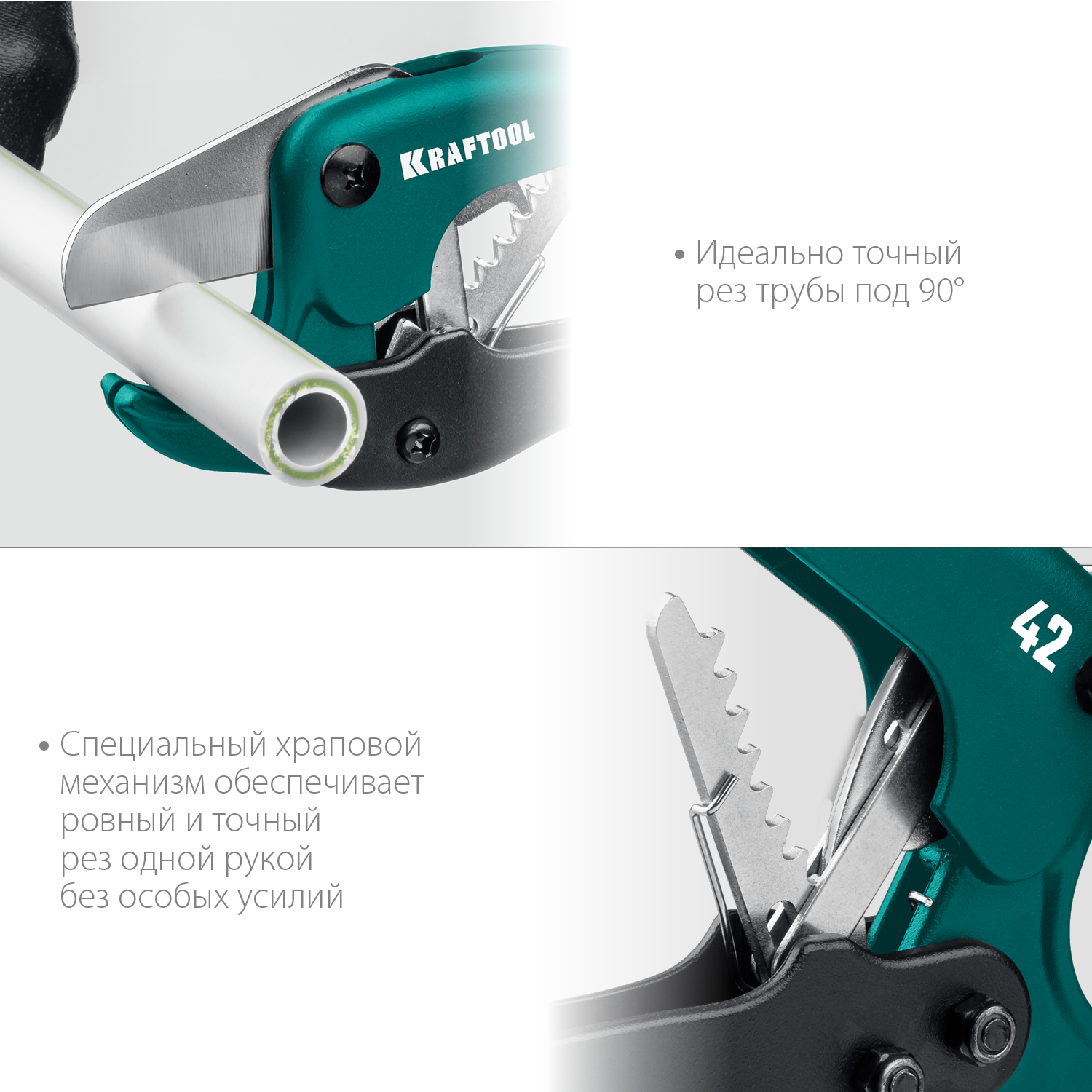 - Особый храповый механизм обеспечивает легкий, прямой и точный рез одной рукой с приложением минимального усилия