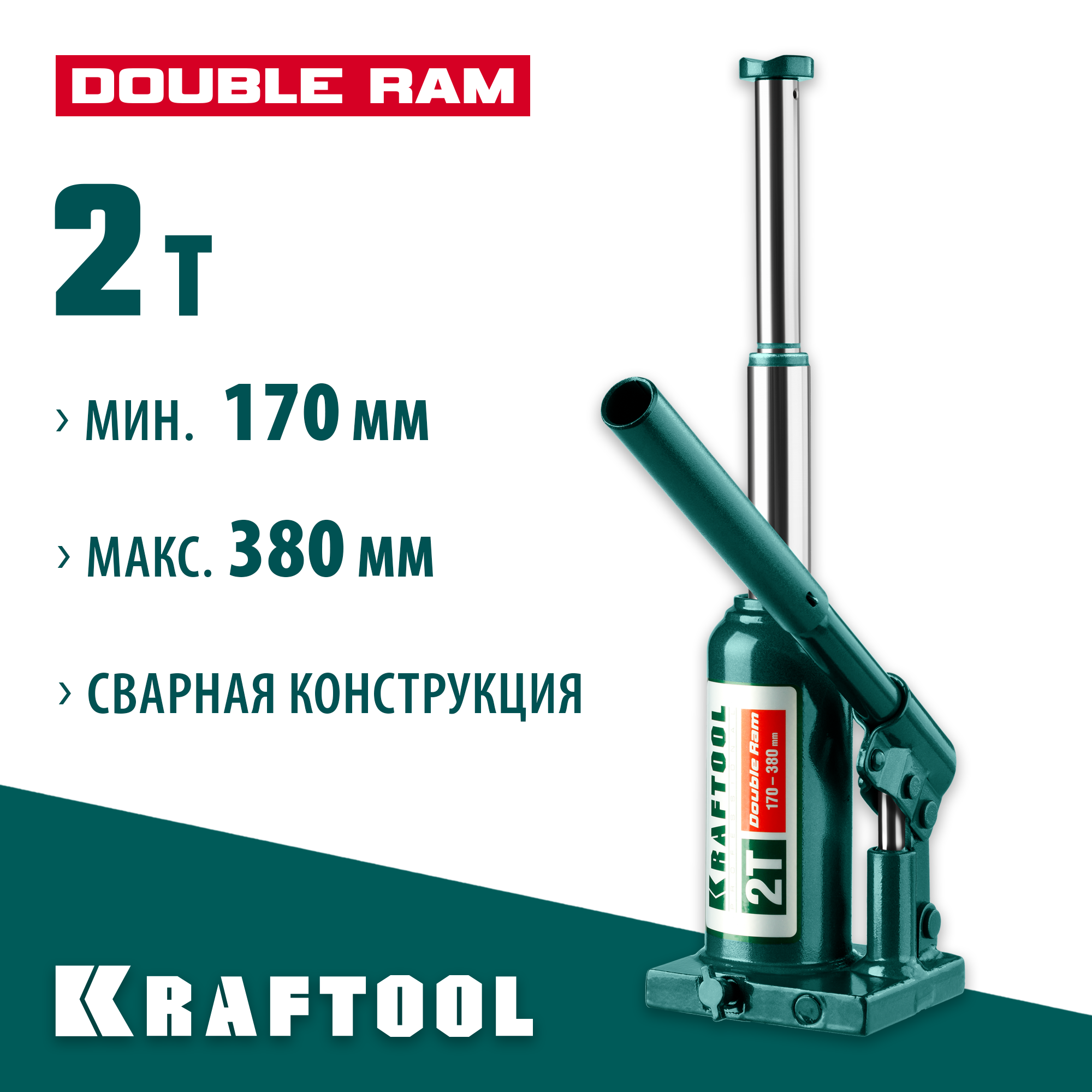 KRAFTOOL DOUBLE RAM, 2 т, 170 - 380 мм, с увеличенным подъемом, двухштоковый бутылочный домкрат (43463-2)