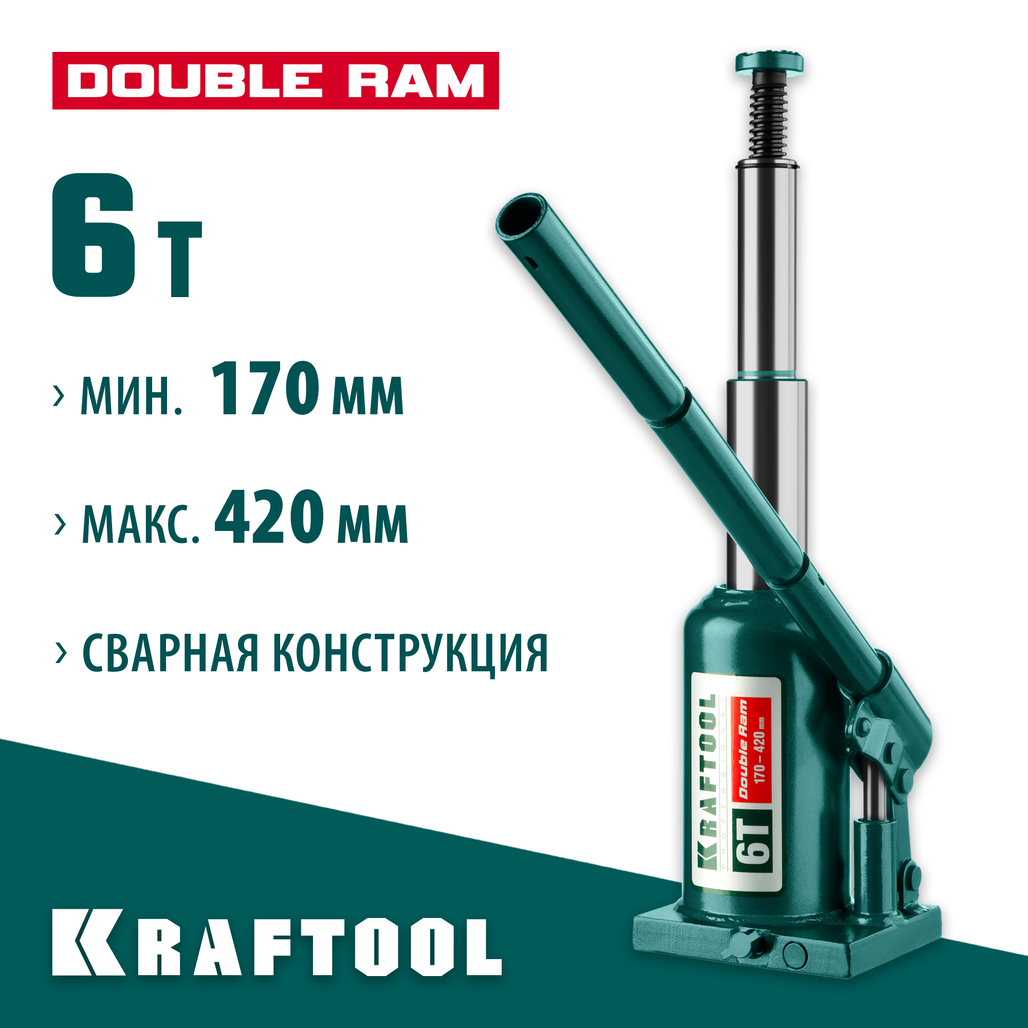 KRAFTOOL DOUBLE RAM, 6 т, 170 - 420 мм, с увеличенным подъемом, двухштоковый бутылочный домкрат (43463-6)
