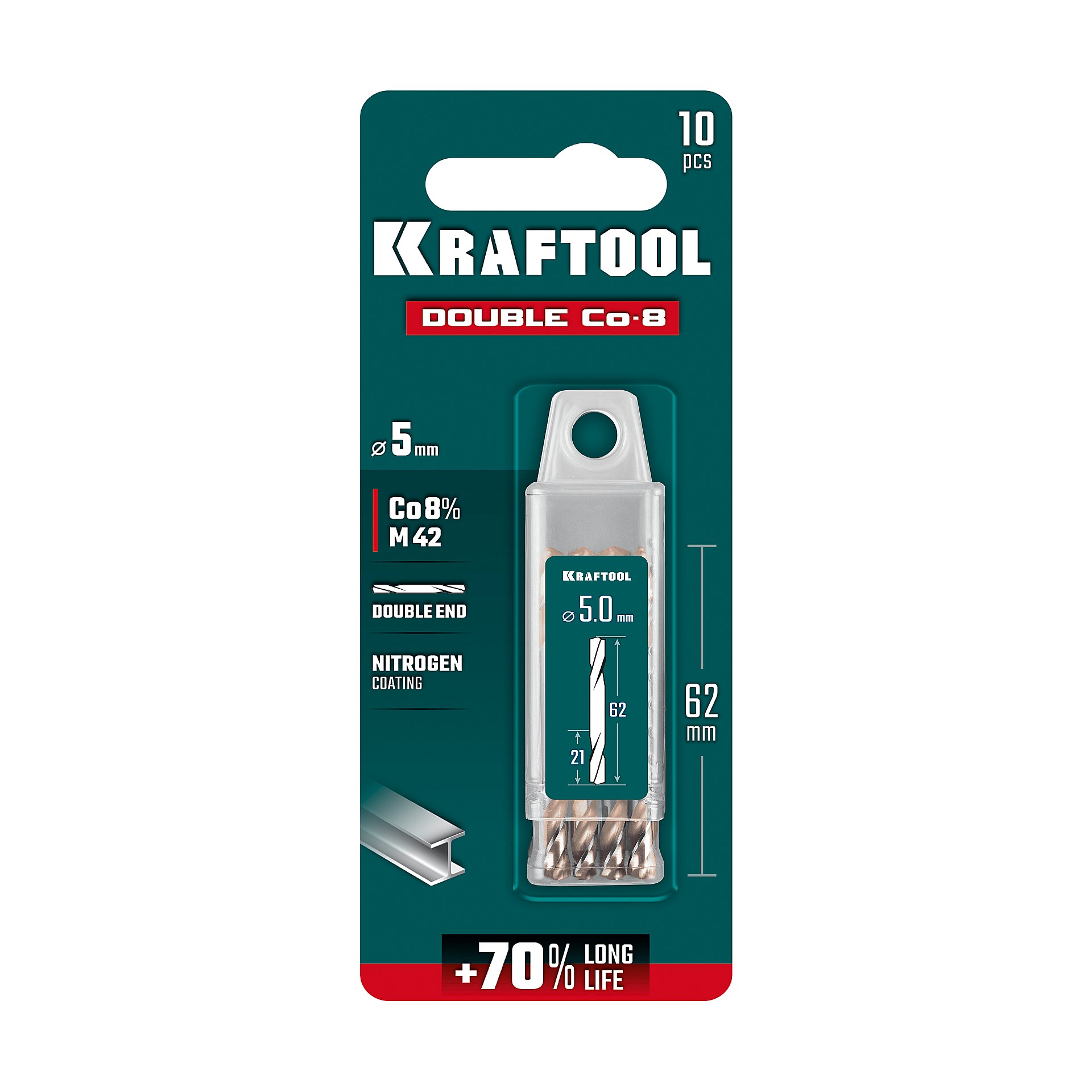 KRAFTOOL DOUBLE Сo-8 5х62мм, Сверло двухстороннее по металлу, сталь M42(+8%Co), класс А (29654-5.0-10)