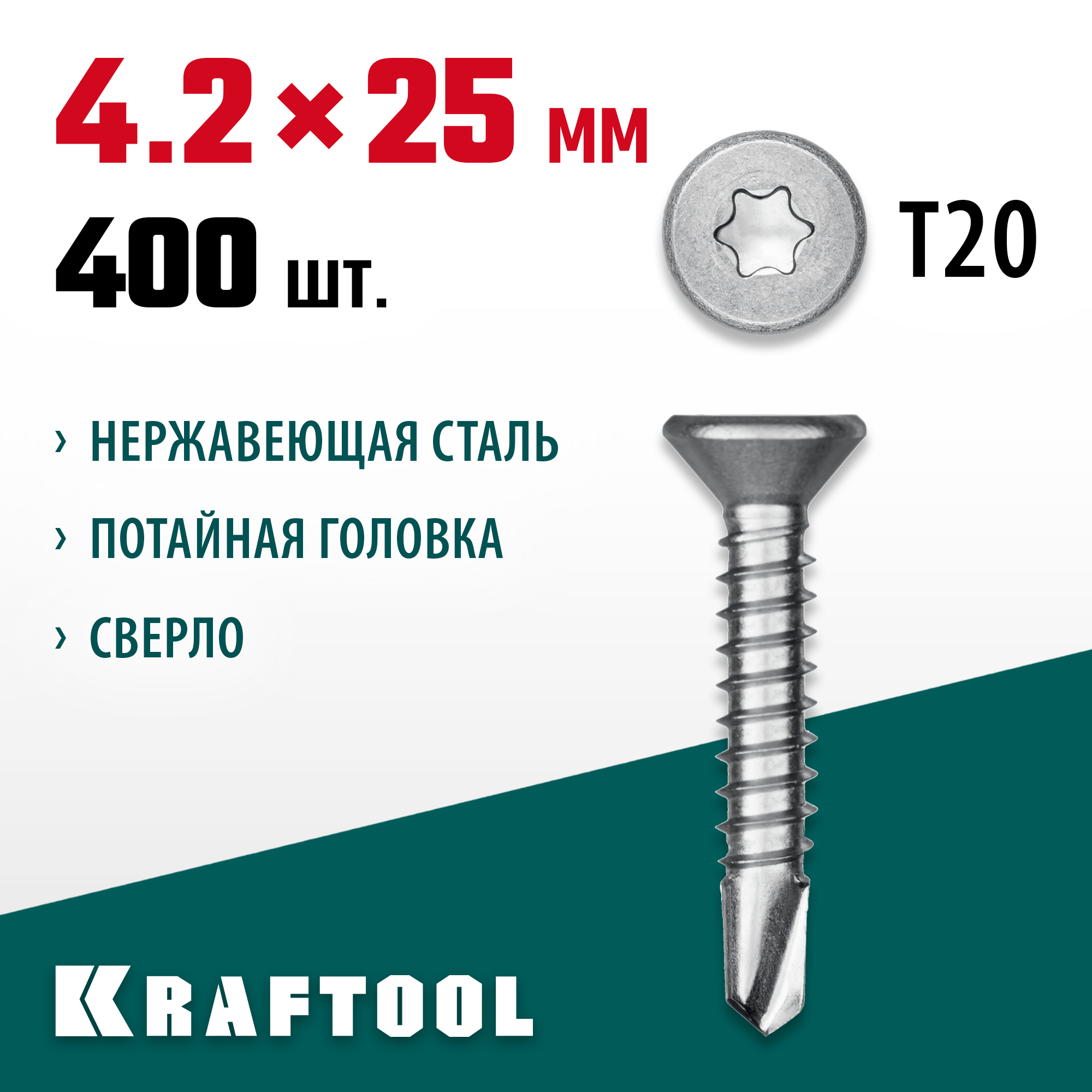 KRAFTOOL DS-C, 25 х 4.2 мм, А2, сверло, потайная головка, ТХ20, 400 шт, саморез нержавеющий (300932-42-025)