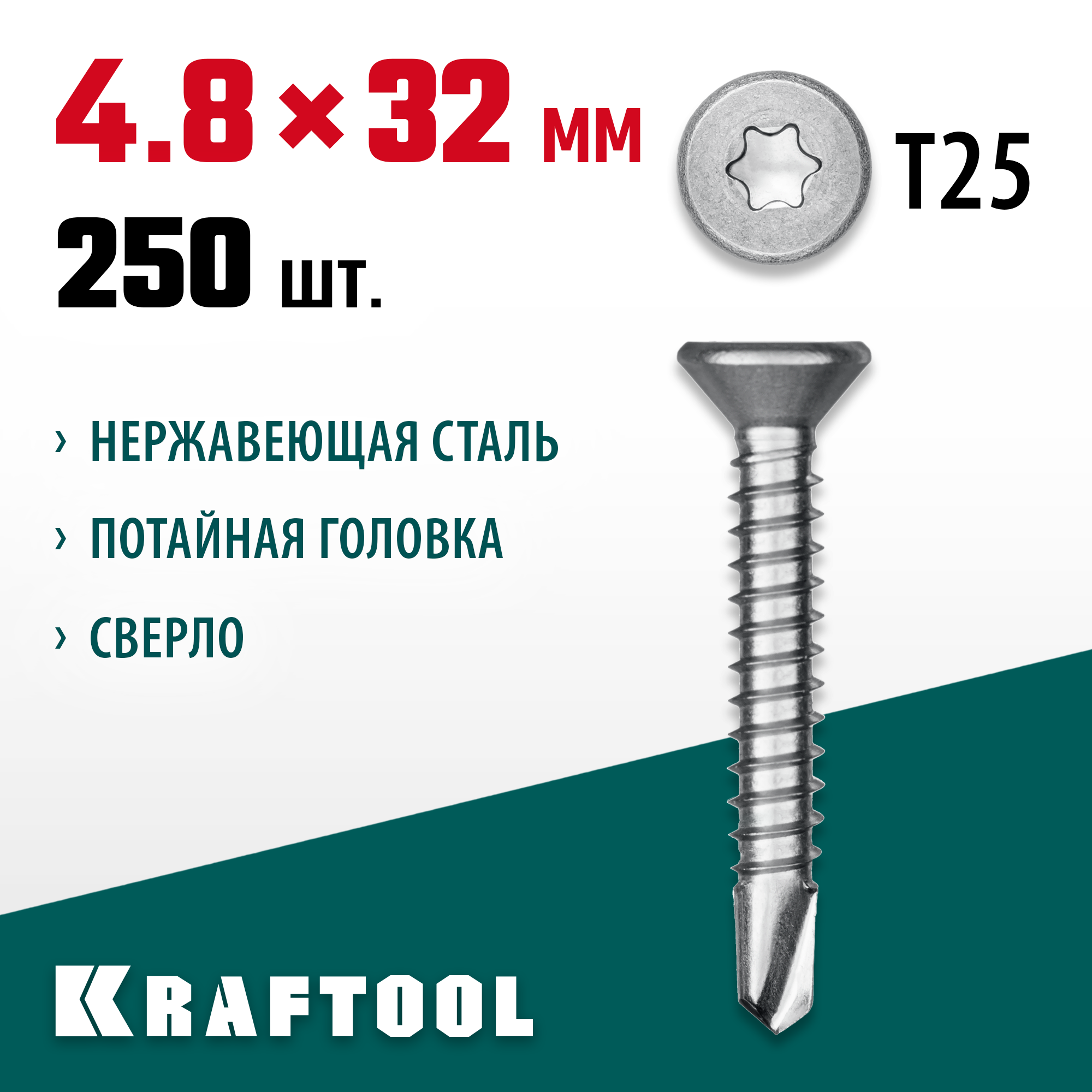 KRAFTOOL DS-C, 32 х 4.8 мм, А2, сверло, потайная головка, ТХ25, 250 шт, саморез нержавеющий (300932-48-032)