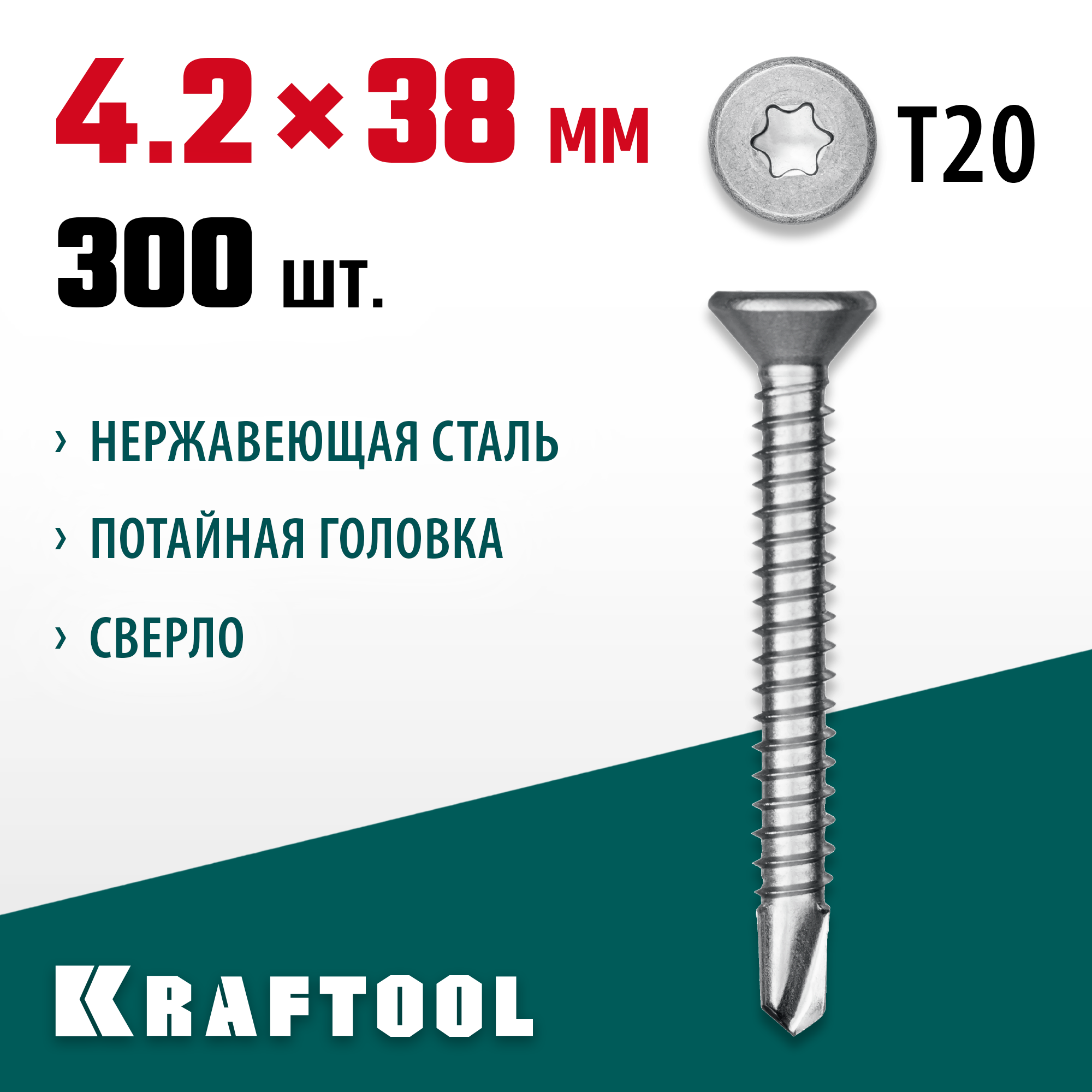 KRAFTOOL DS-C, 38 х 4.2 мм, А2, сверло, потайная головка, ТХ20, 300 шт, саморез нержавеющий (300932-42-038)