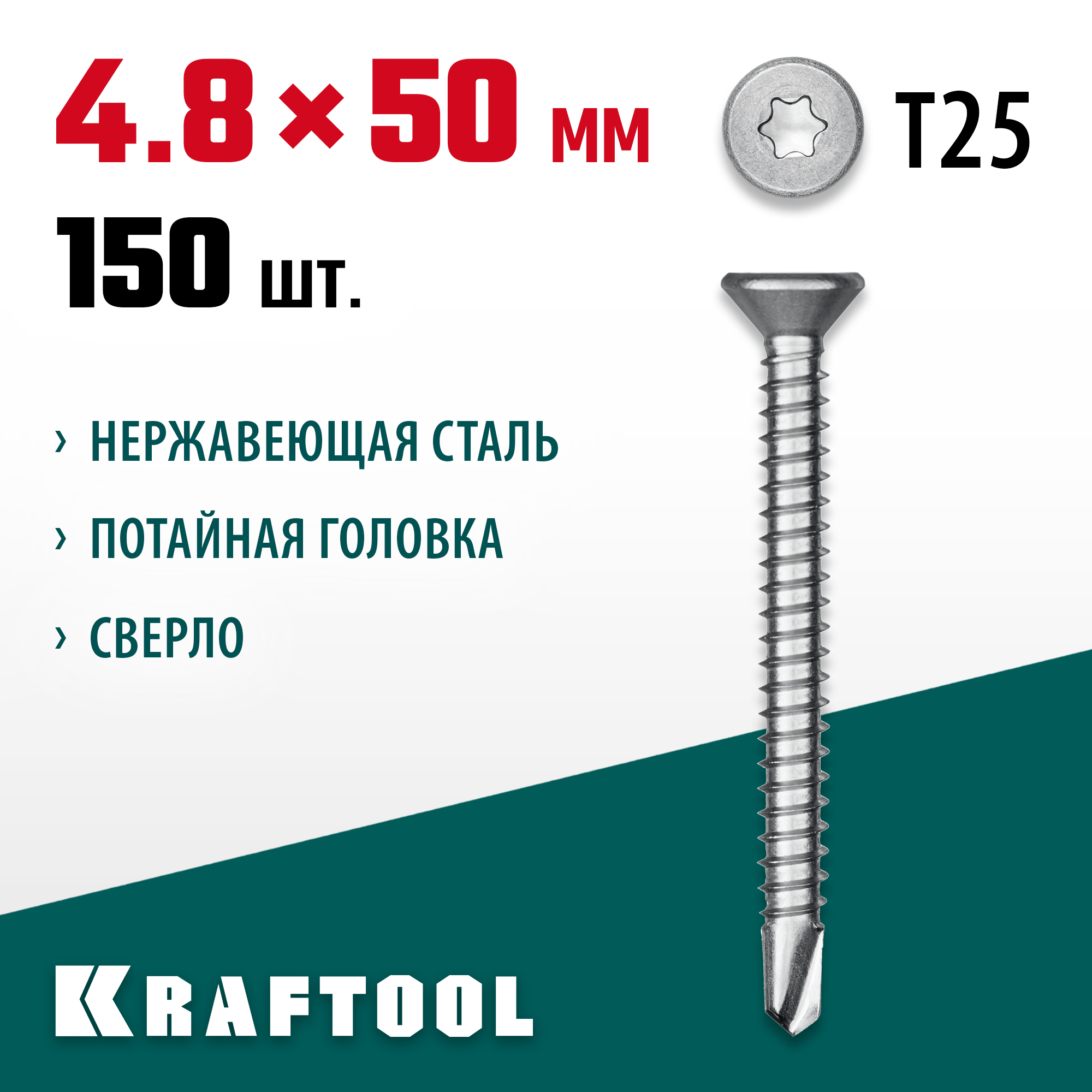 KRAFTOOL DS-C, 50 х 4.8 мм, А2, сверло, потайная головка, ТХ25, 150 шт, саморез нержавеющий (300932-48-050)