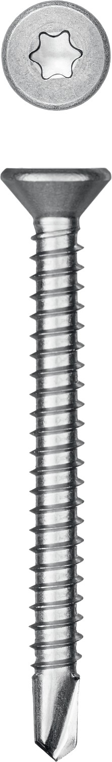 Саморезы с потайной головкой и сверлом изготовлены в соответствии со стандартом DIN7504P из нержавеющего прутка. Легирование никелем, хромом и марганцем полностью сохраняет аустенитную структуру кристаллической решетки, благодаря чему нержавеющие саморезы обладают хорошей прочностью и пластичностью, немагнитными свойствами и невысокой электропроводностью. Саморезы легко вкручиваются обычным шуруповертом или отверткой.