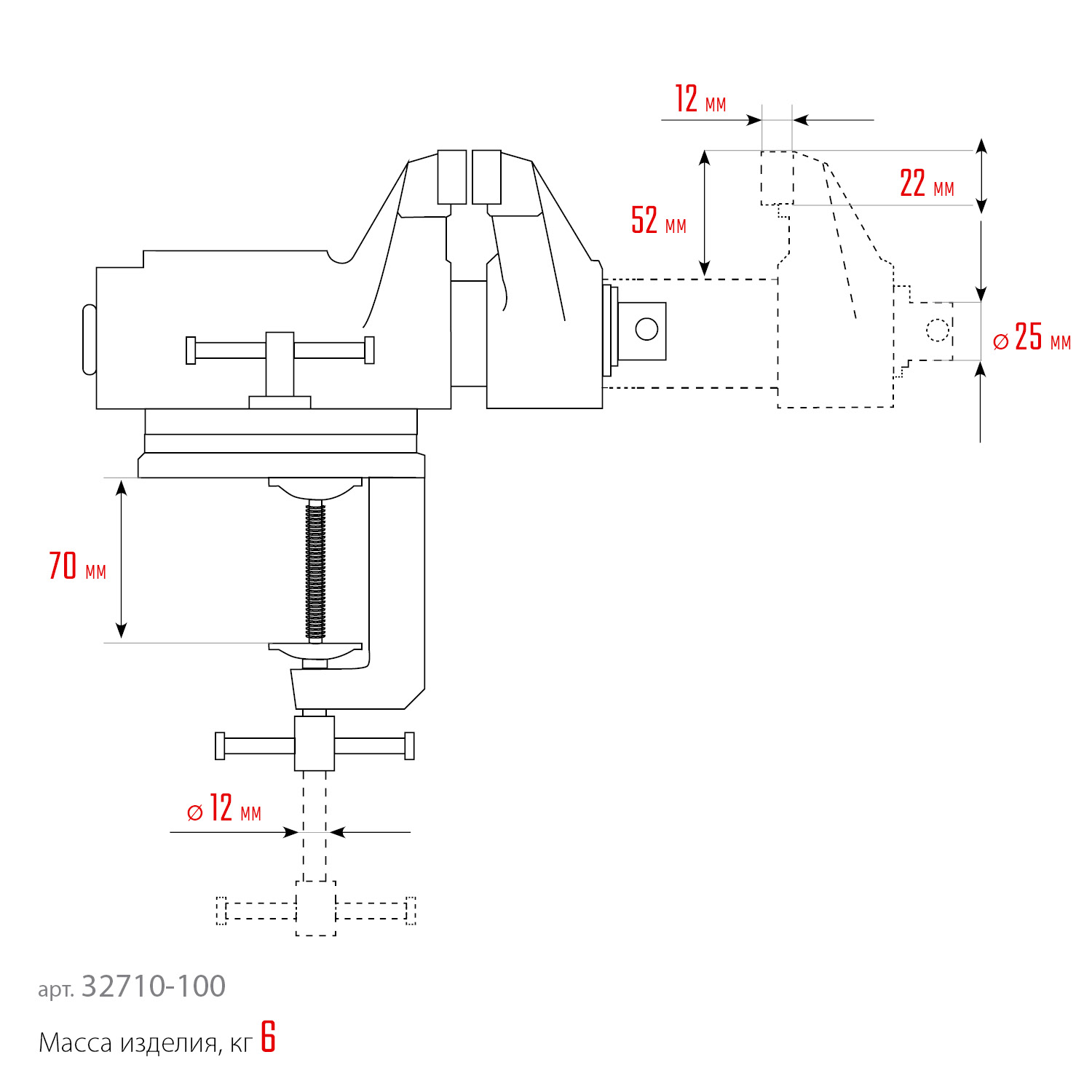 - Крепление тисков на струбцине