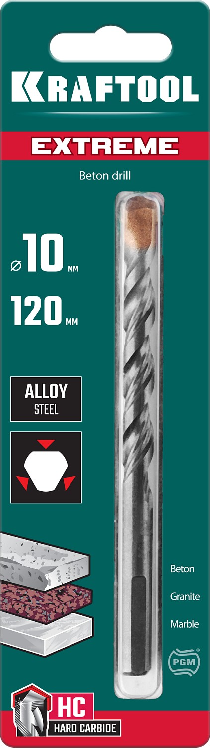 KRAFTOOL Extreme, 10 х 120 мм, трехгранный хвостовик, сверло по бетону (29166-120-10)