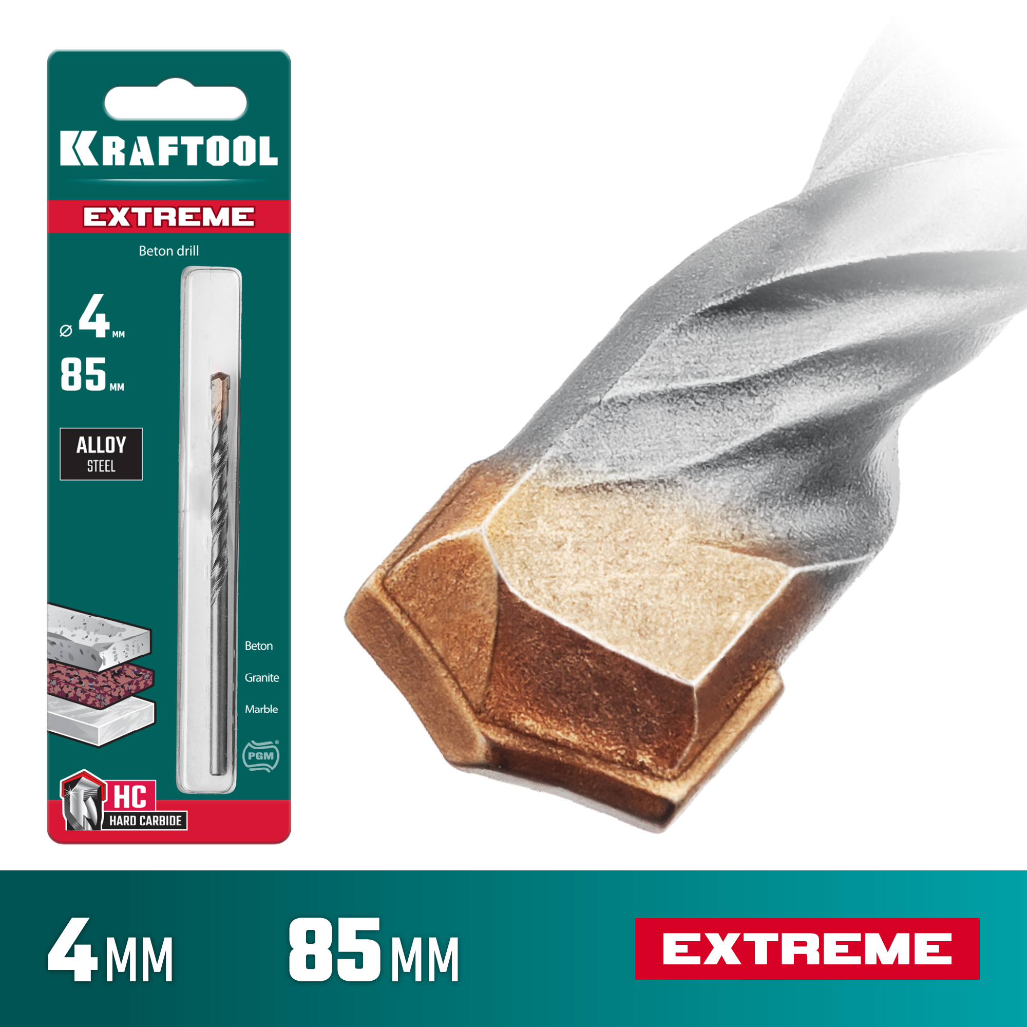 KRAFTOOL Extreme, 4 х 85 мм, цилиндр. хвостовик, сверло по бетону (29166-085-04)