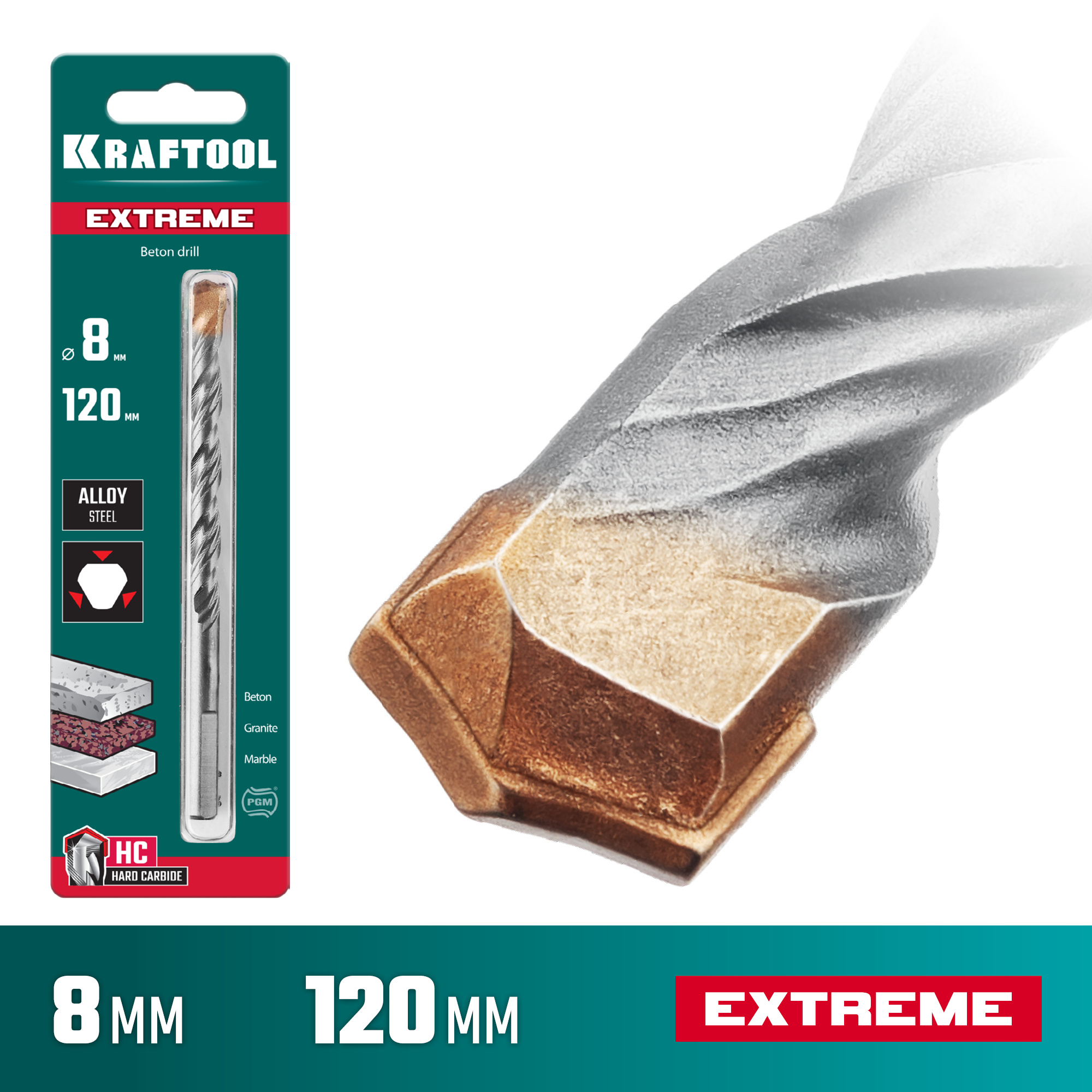 KRAFTOOL Extreme, 8 х 120 мм, трехгранный хвостовик, сверло по бетону (29166-120-08)