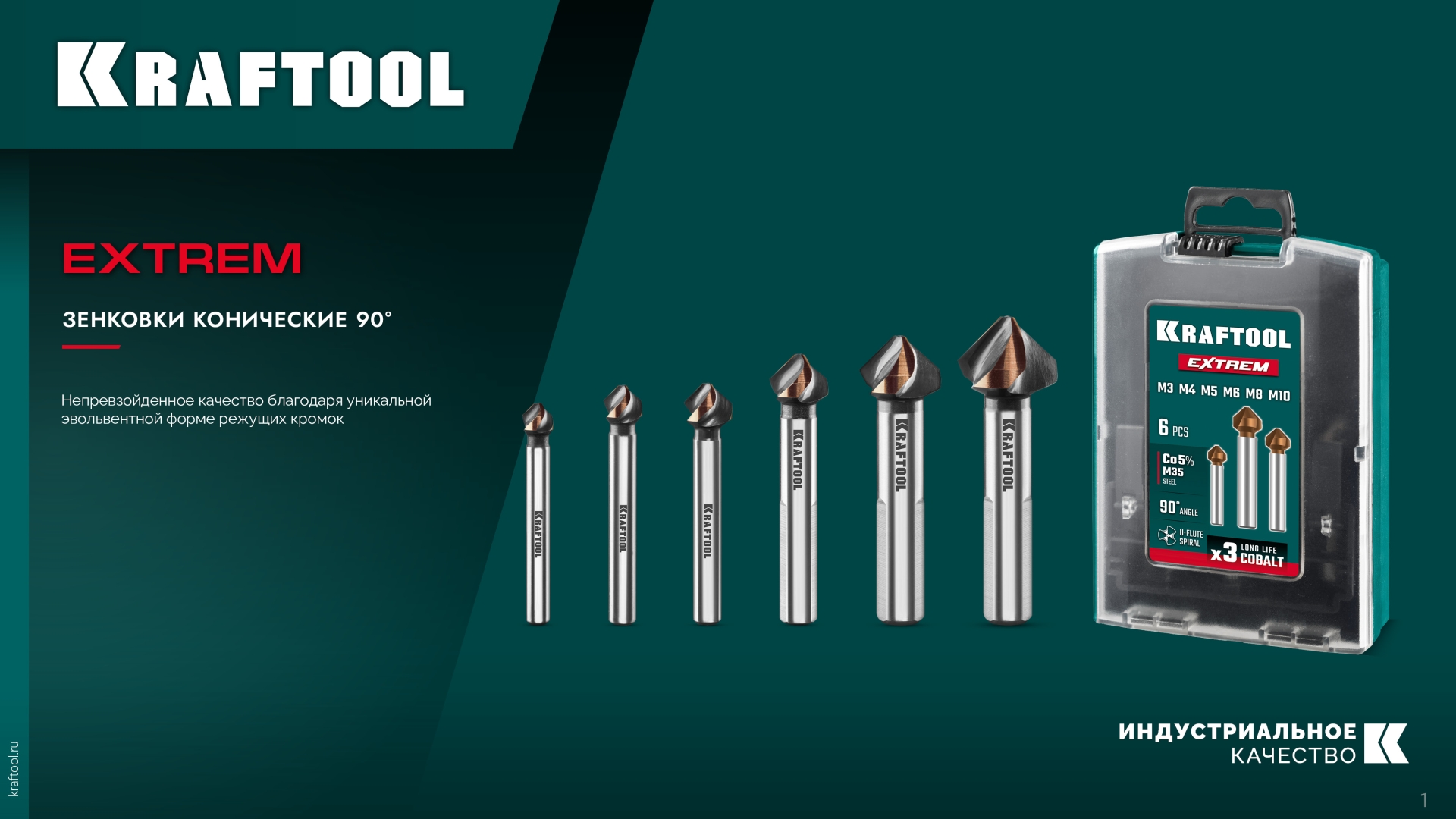 KRAFTOOL EXTREME Со5-А, d 16.5х10х60 мм, Z3, 90°, сталь M35, U-образная спираль, зенковка (29734-8)