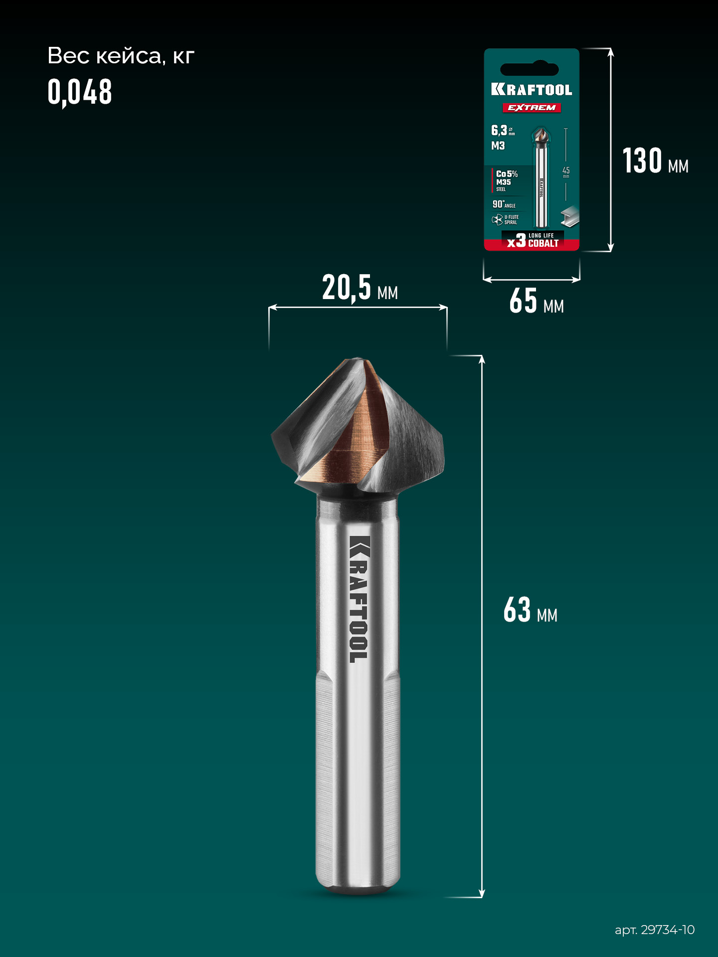 Применяется для зенкования отверстий в сталях, цветных металлах и пластике.