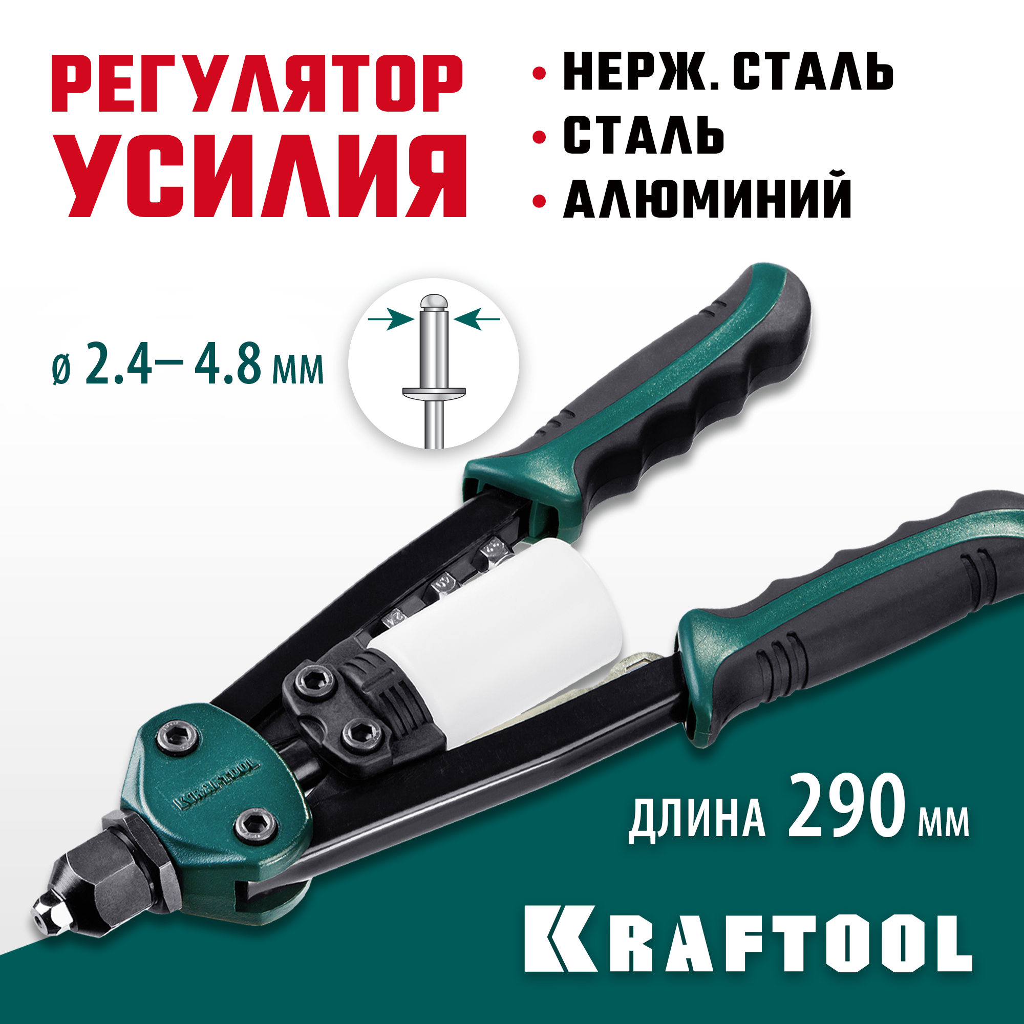 Для установки нержавеющих, стальных и алюминиевых вытяжных заклепок