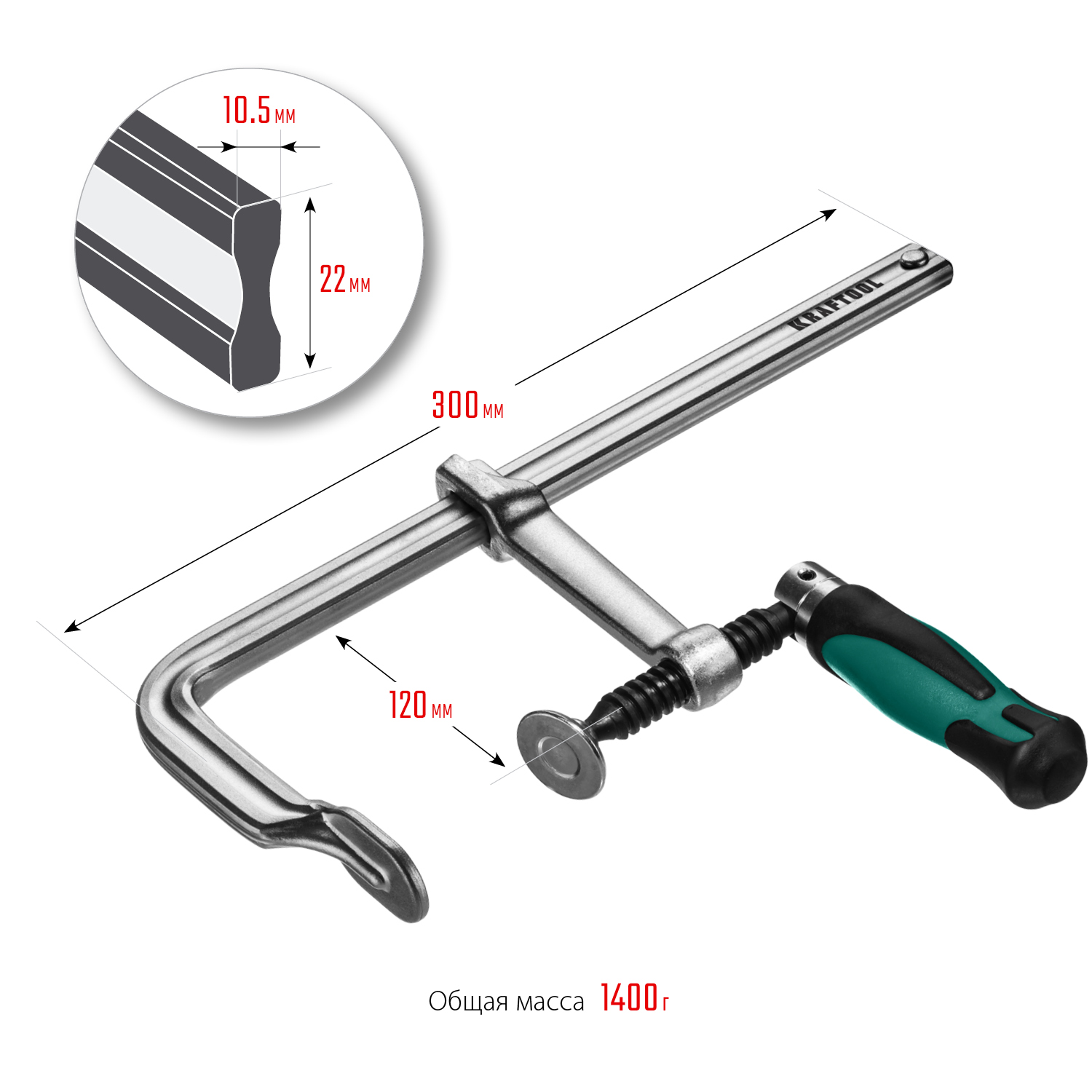 KRAFTOOL Forge FF-300/120, 120 х 300 мм, цельнокованая струбцина F (32014-120-300)