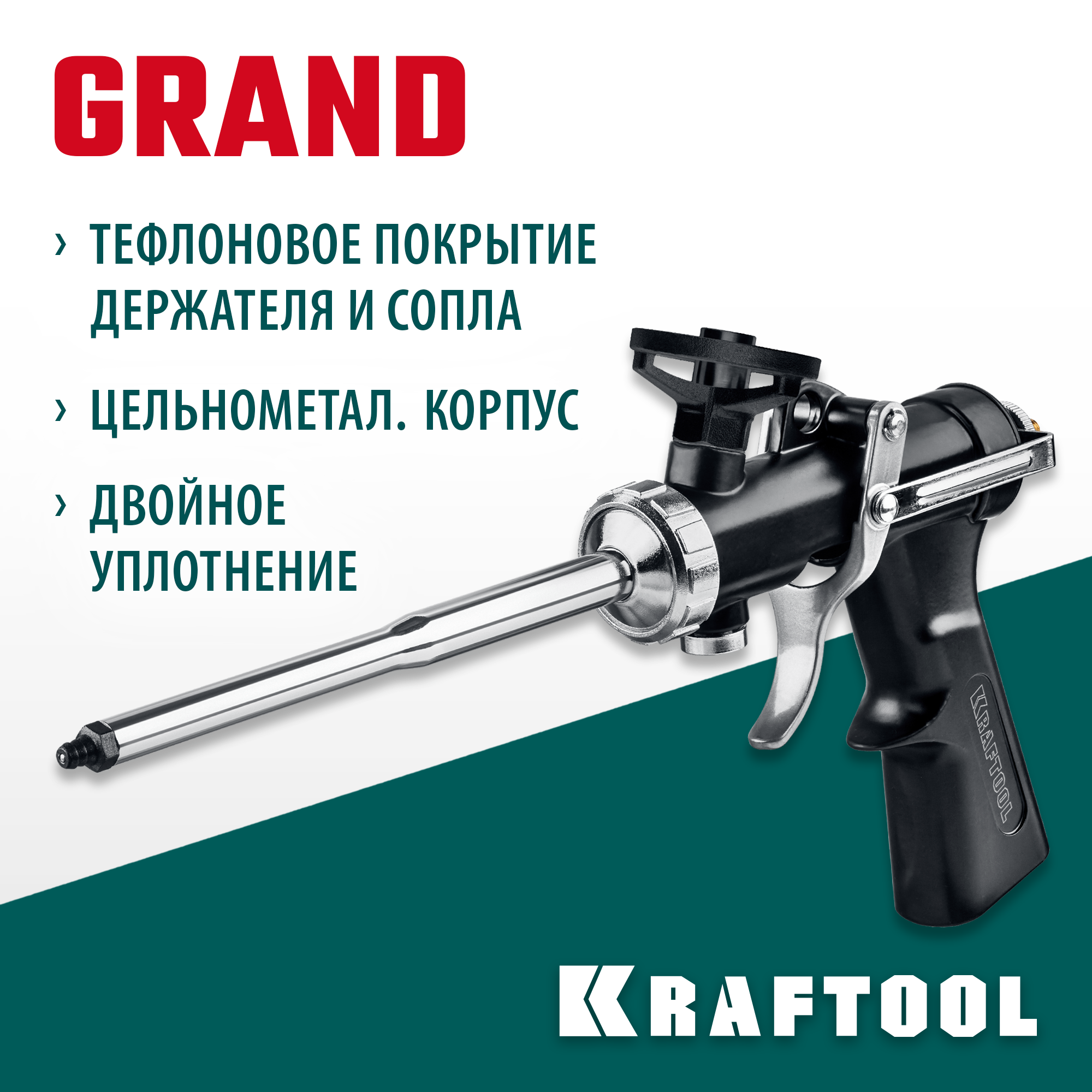 Пистолет для монтажной пены GRAND – инновационный профессиональный инструмент, предназначенный для индустриального применения, отличающийся непревзойдённой герметичностью, высокой надёжностью и удобством в работе. Инструмент оснащён надёжным цельнометаллическим корпусом и имеет покрытый тефлоном игольчатый клапан, это обеспечивает быструю и простую очистку, что высоко ценится профессионалами. При использовании с профессиональными баллонами обеспечивает многократно увеличенный выход пены по сравнению со стандартной упаковкой. При этом отсутствует эффект вторичного расширения.