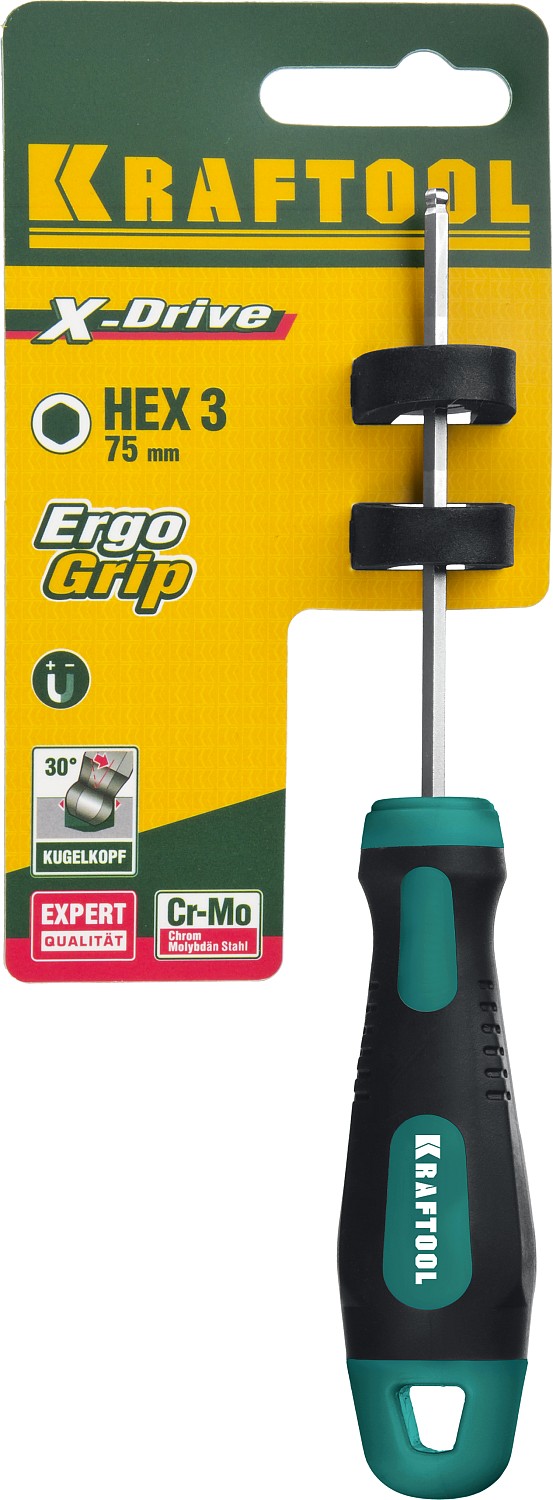 KRAFTOOL Х-Drive, Hex3 x 75, отвертка (250075-3-075)