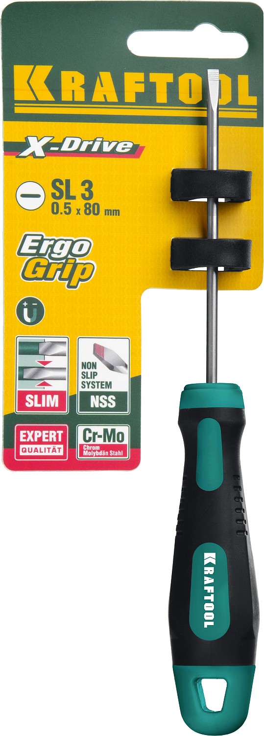 Профессиональные отвертки KRAFTOOL X-Drive изготовлены из высокопрочной Cr-Mo стали. Специальная закалка стержня и система насечек NSS обеспечивают удобство работы и длительный срок службы