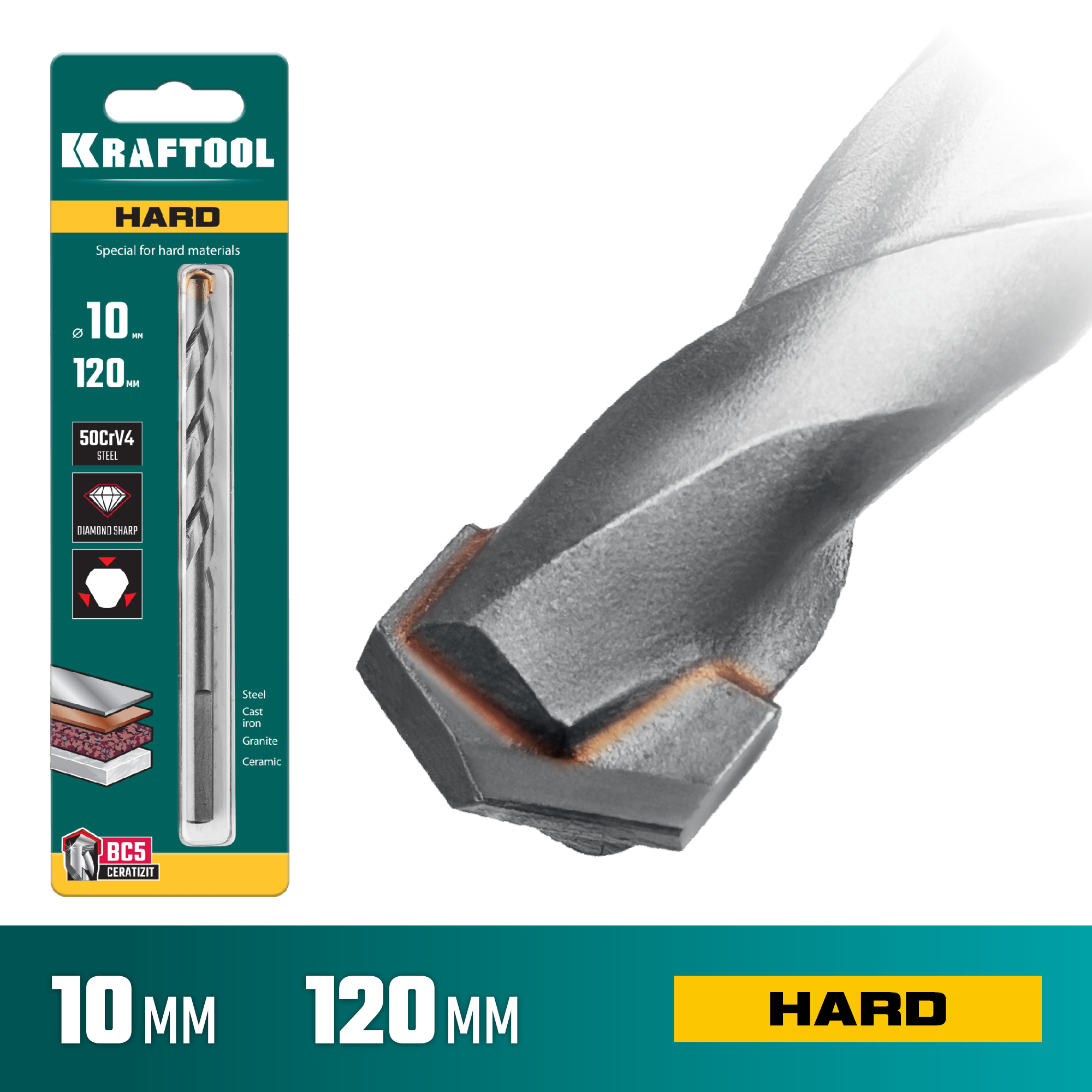 KRAFTOOL Hard, 10 х 120 мм, тв.сплав ВС5, сверло специальное по твёрдым материалам (29177-120-10)