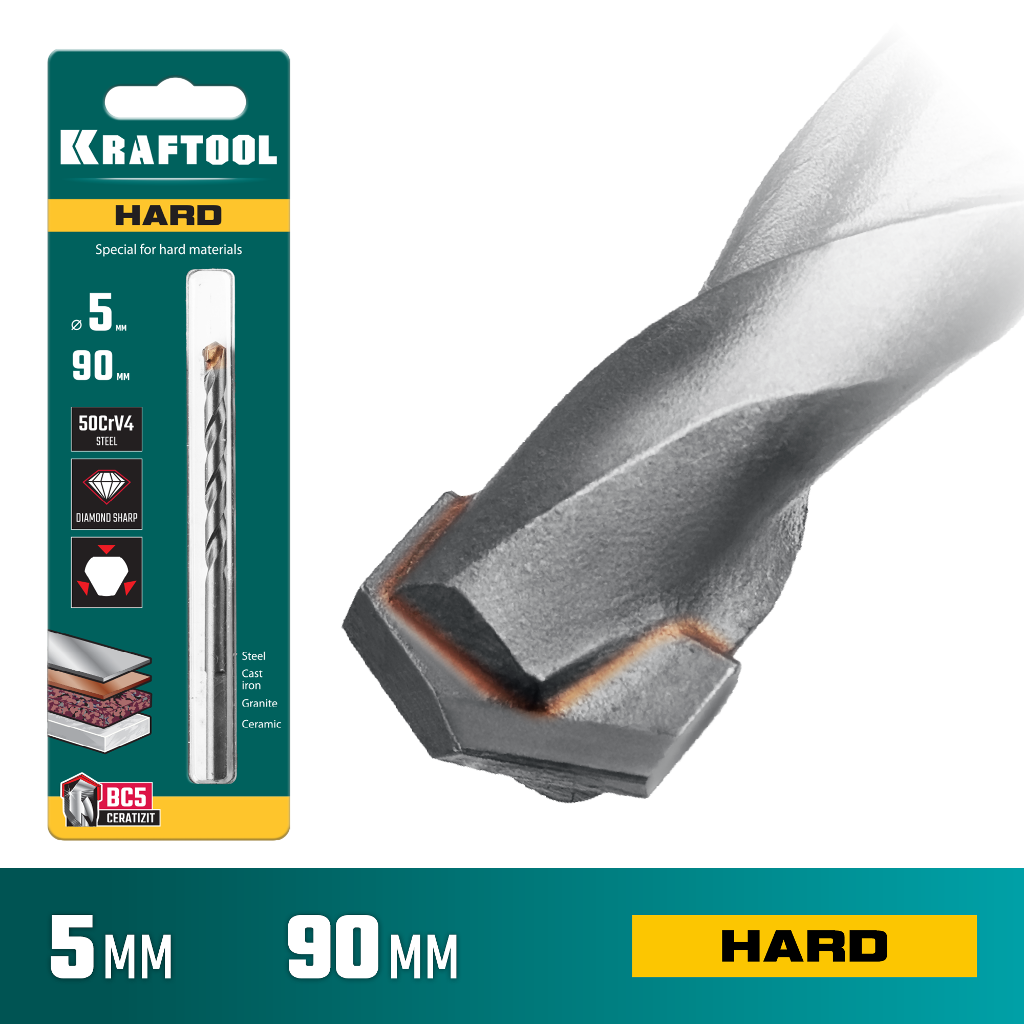 KRAFTOOL Hard, 5 х 90 мм, тв.сплав ВС5, сверло специальное по твёрдым материалам (29177-090-5)