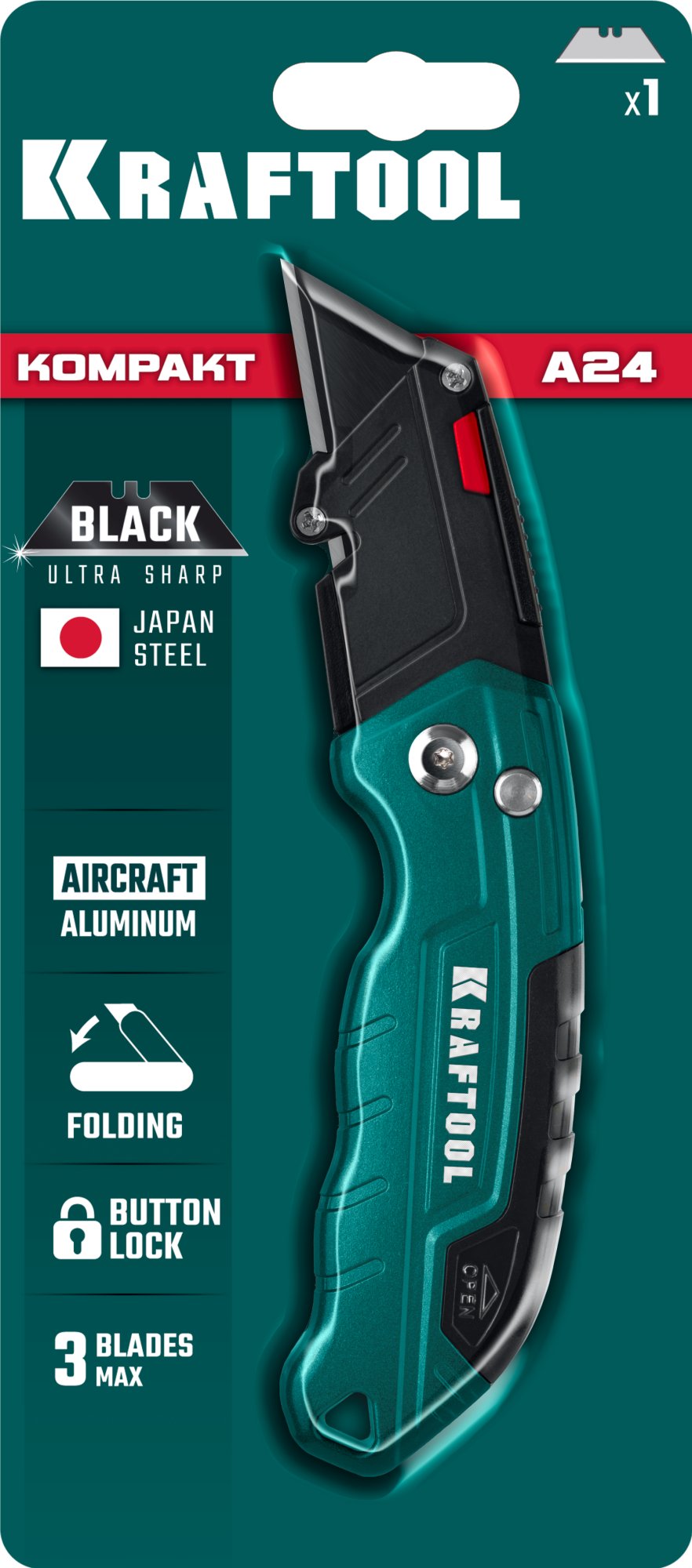 - Надежный фиксатор лезвия Button-lock,