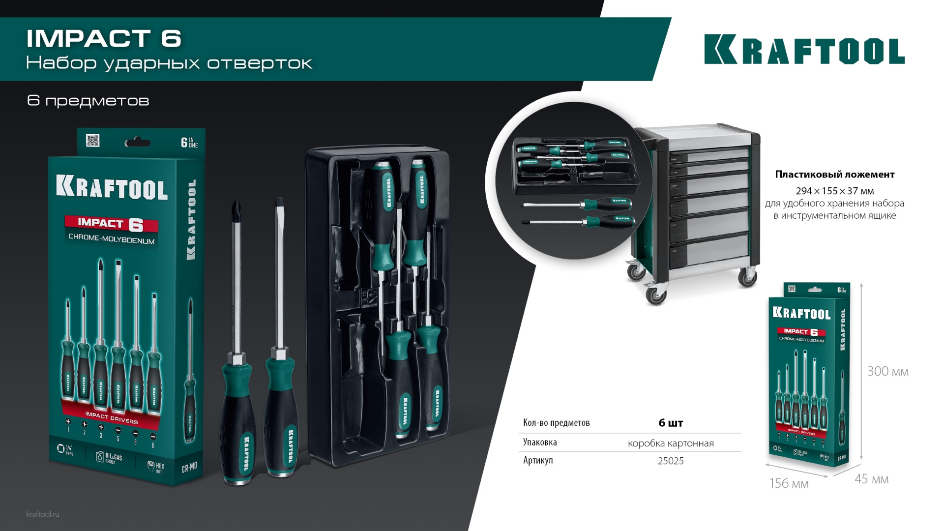 - Пластиковый ложемент 294 х 155 х 37 мм для удобного хранения набора в инструментальном ящике