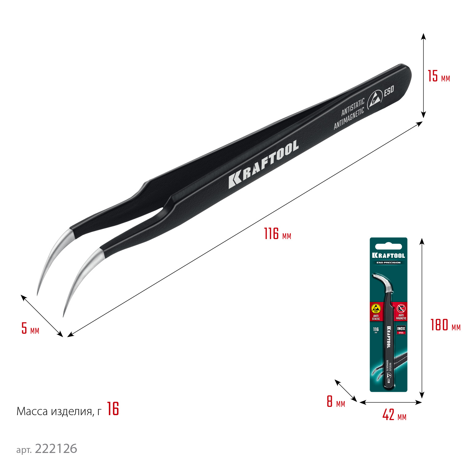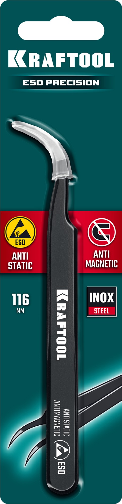 Прецизионный пинцет изготовлен из антимагнитной нержавеющей стали. Специальное покрытие ESD защищает от электростатического разряда