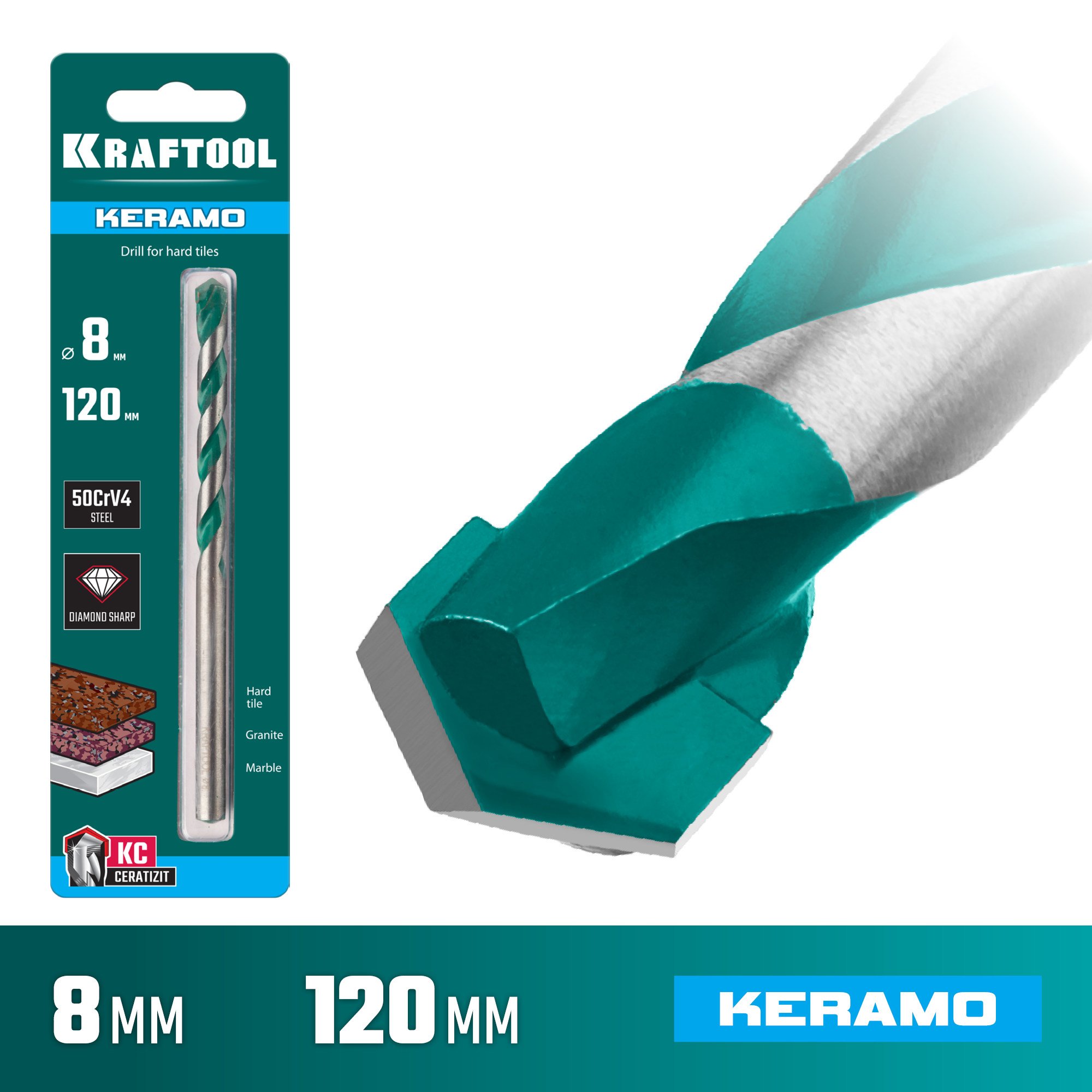 Благодаря специальной твердосплавной пластине и алмазной заточке режущих кромок сверла KERAMO уверенно проходят через керамогранит, мрамор, гранит и прочие твердые материалы.
