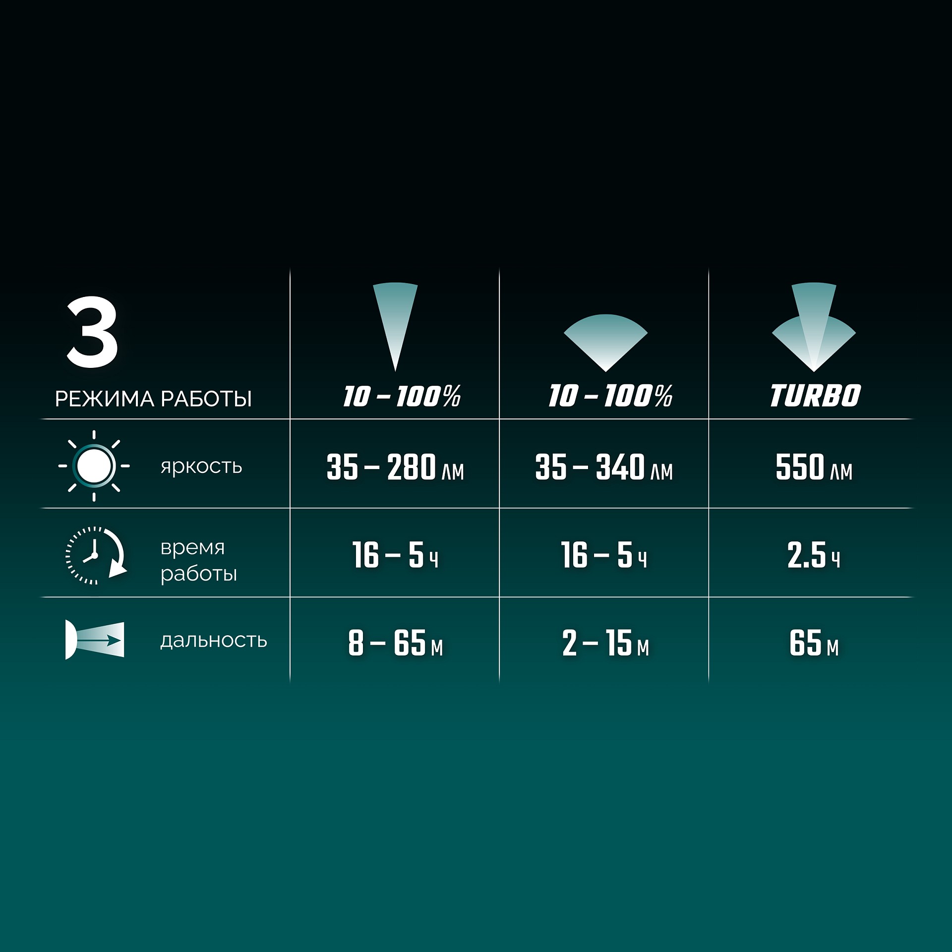 - 3 режима работы с возможностью диммирования светового потока,