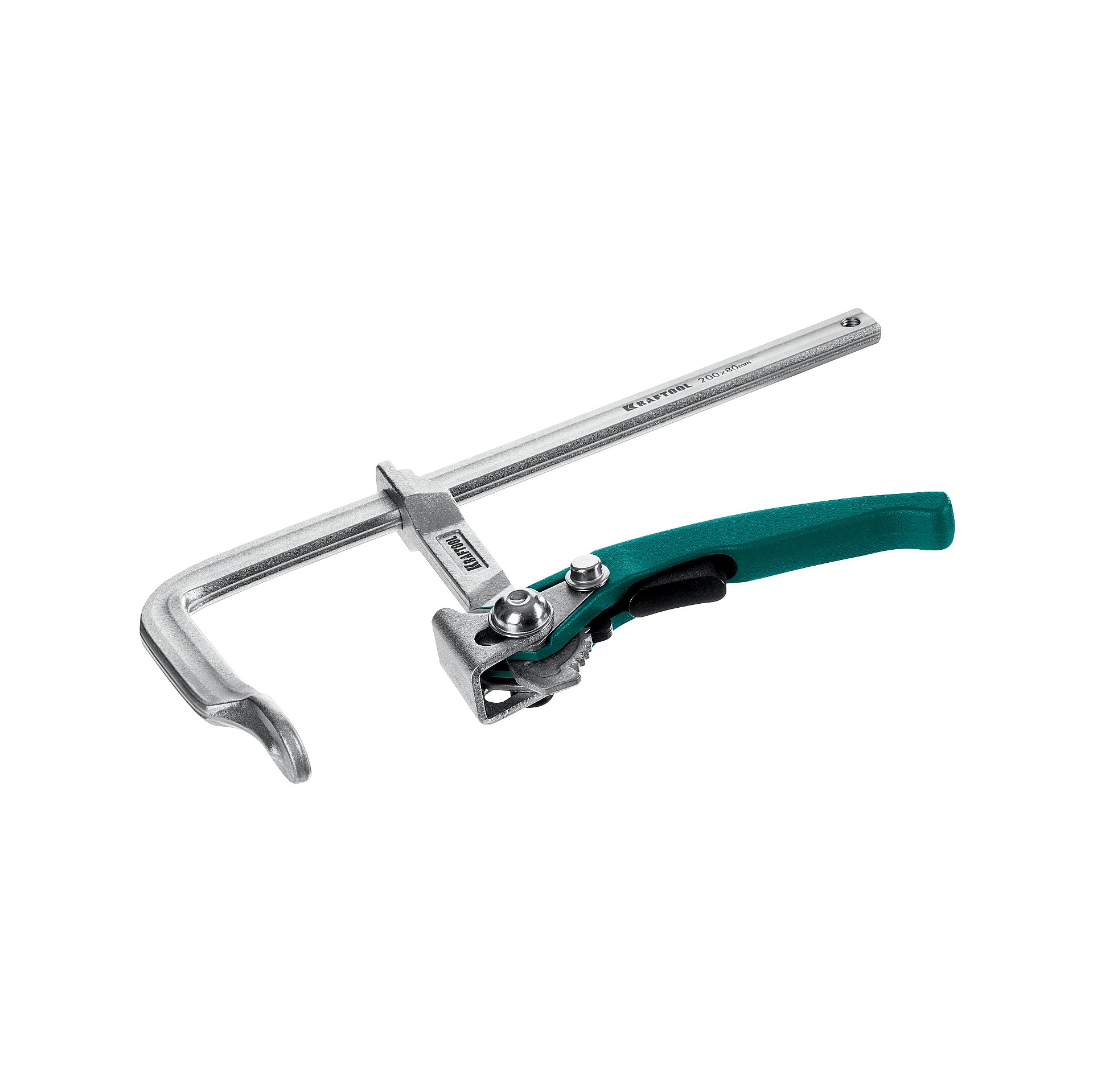 Профессиональный быстрозажимной инструмент , Цельнокованная мегапрочная направляющая рейка. Надежный храповый механизм с эксцентриковым зажимом. Сила сжатия 280 кг. Жесткая конструкция рамы. Сохраняет силу зажима даже при воздействии вибрации. Подходит для применения в машинной среде. Возможна работа одной рукой. Продуманная система снятия зажима даже при экстримальном сжатии. Для профессионального использования.