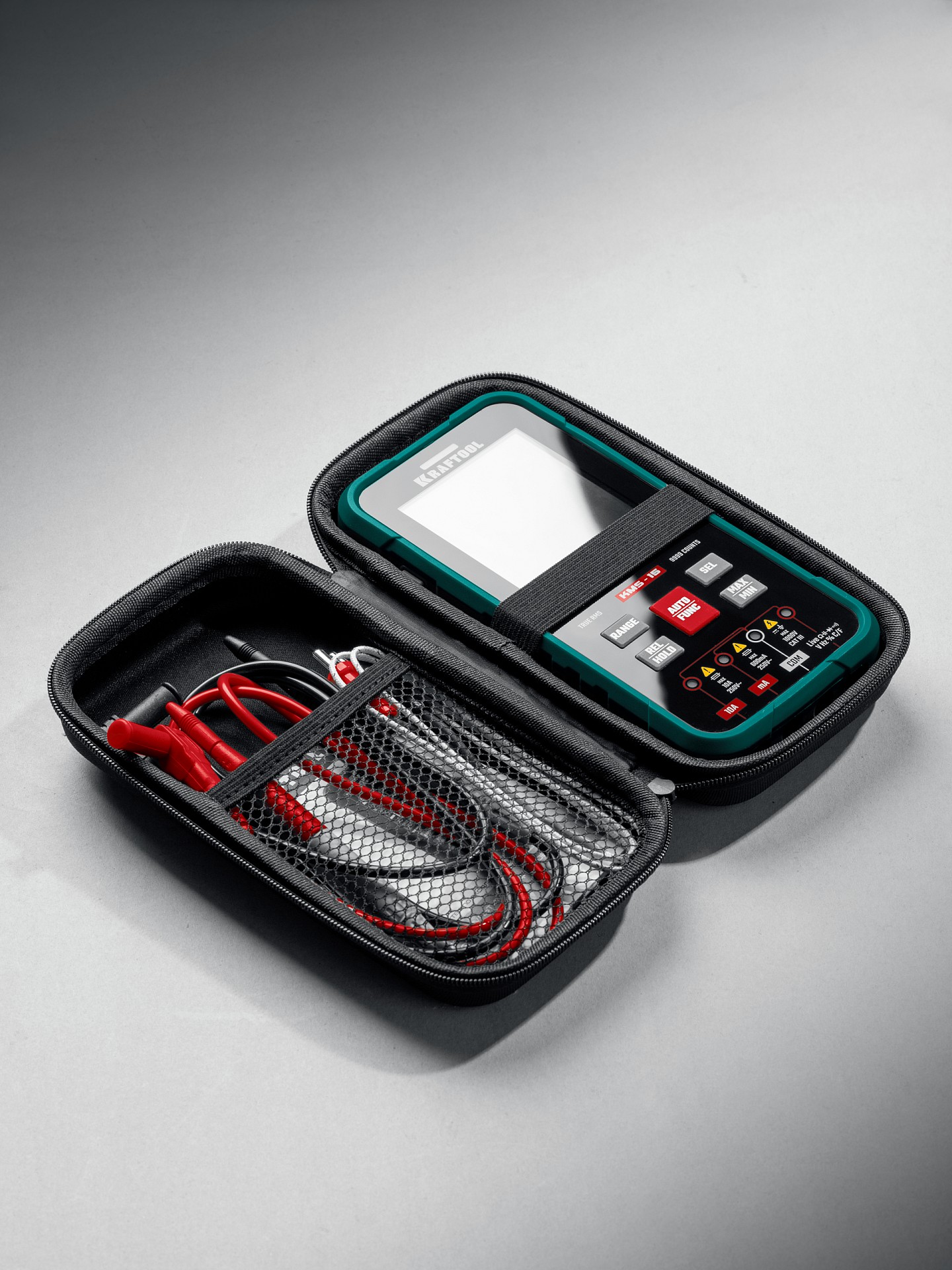 Профессиональный автоматический цифровой смарт-мультиметр KRAFTOOL гарантирует наивысшую точность измерений. Применение высококачественных материалов обеспечивает длительный срок службы. Прибор имеет функции измерения переменного и постоянного напряжения, сопротивления, емкости, проверки целостности цепей со звуковым сигналом, проверки диодов, измерения переменного и постоянного тока, измерение частоты, измерение температуры и режим относительных измерений.
